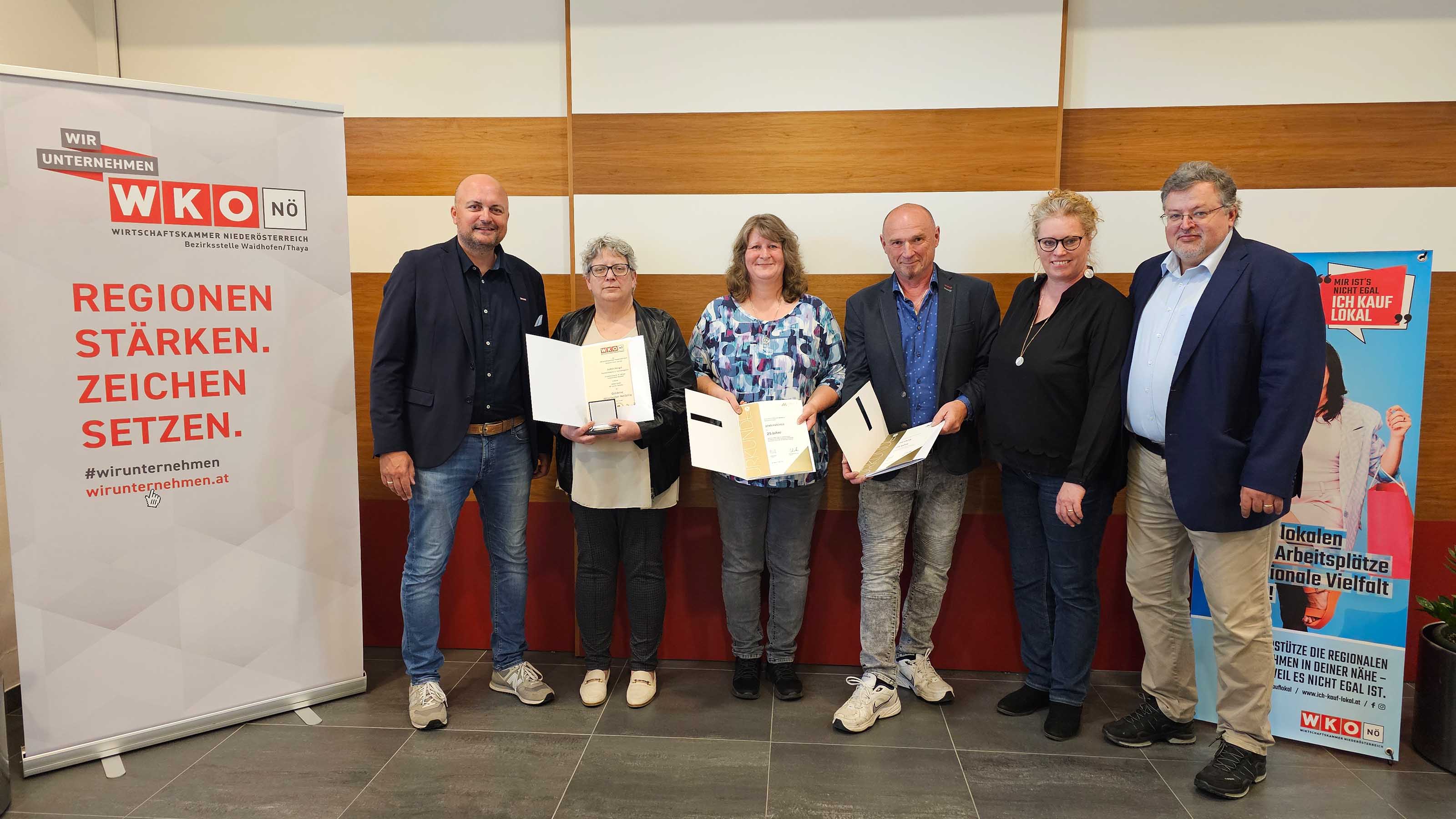 Im Rahmen einer Firmenfeier der Firma Herka, Frottierwarenerzeugung in Kautzen, wurden die langjährigen MitarbeiterInnen Judith Hengst (35 Jahre), Jitka Pascher (25 Jahre) und Jan Hacka (25 Jahre) für ihre langjährige Betriebszugehörigkeit geehrt. Firmenchef Thomas Pfeiffer würdigte die Verdienste der JubilarInnen. Seitens der Wirtschaftskammer überreichte Bezirksstellenleiter Alexander Vogl als Zeichen des Dankes Wirtshauskulturgutscheine samt Urkunden.