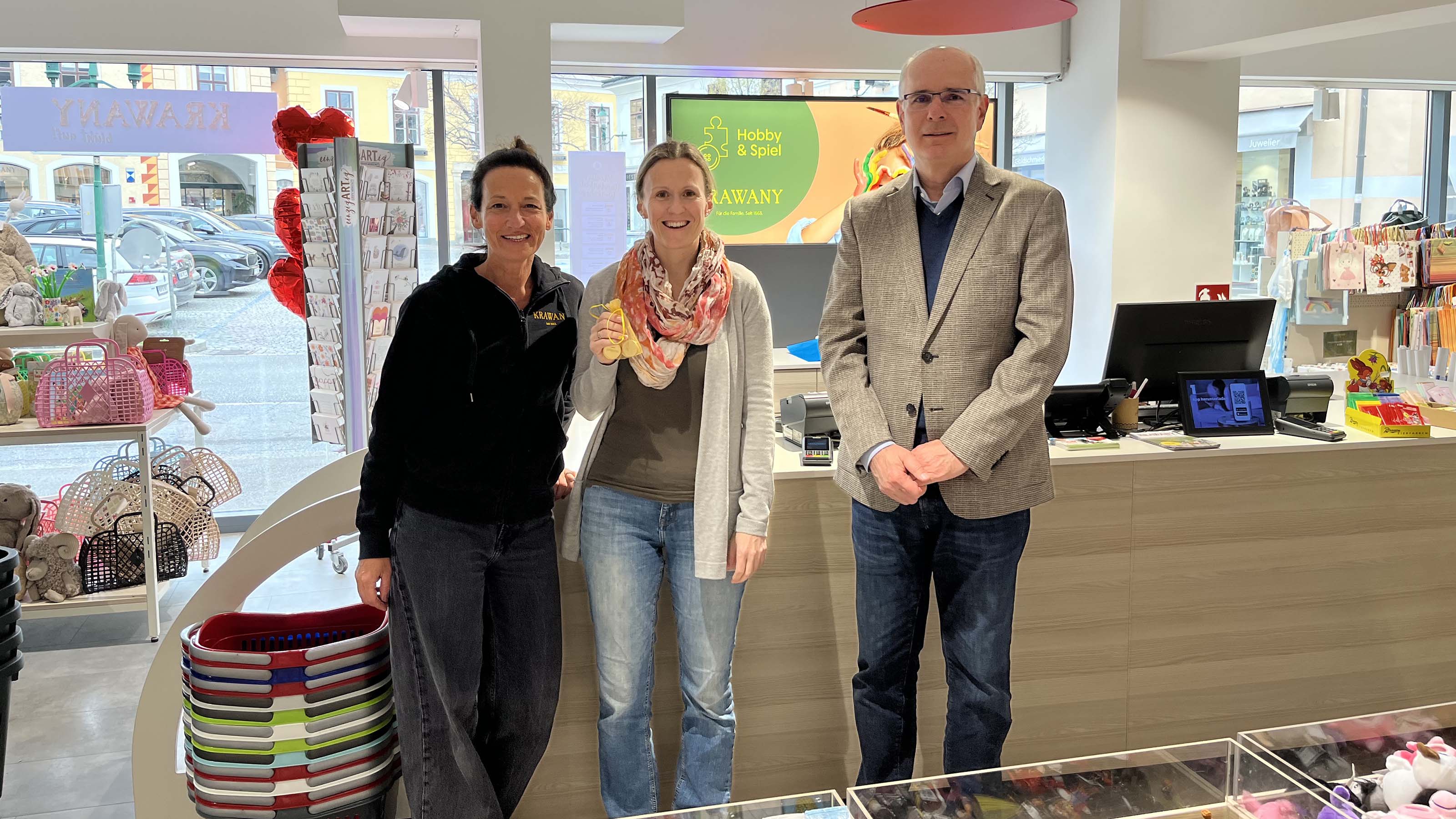 Der in Kooperation mit dem Gesundheitsministerium herausgegebene Spielzeugratgeber wird über die Gemeinden im „Wickelrucksack“ an Jungfamilien bei der Geburt des Nachwuchses verteilt. „Darin finden Eltern wichtige Tipps zur Sicherheit von Spielzeug“, erklärt Andreas Auer, Obmann des NÖ Papier- und Spielwarenhandels. Im Zuge dessen gibt es ein Gewinnspiel. Bei der Ziehung im März durfte sich Daniela Taschke über den Gewinn eines Einkaufsgutscheins im Wert von 100 Euro freuen. Eingelöst wird er in der Mödlinger KRAWANY GMBH – wo Spielwarenfachhändlerin Margareta Wilmink die junge Mutter der Zwillingsmädchen hervorragend beraten wird.