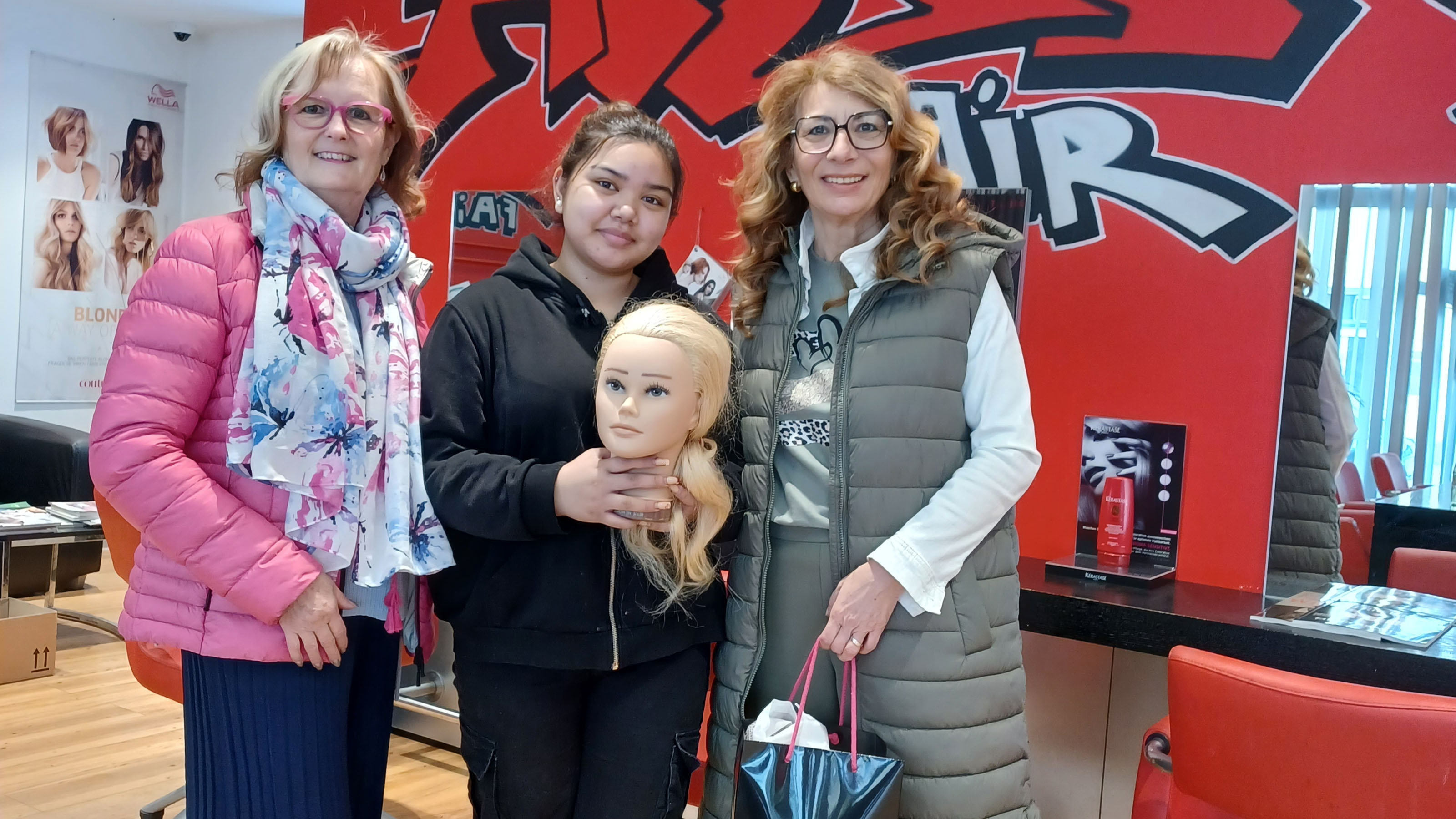 Innungsmeisterin Silvia Rupp und Bezirksvertrauensperson Sylvia Fürhauser überreichen Haartechnikköpfe an Friseur-Lehrlinge in Stockerau