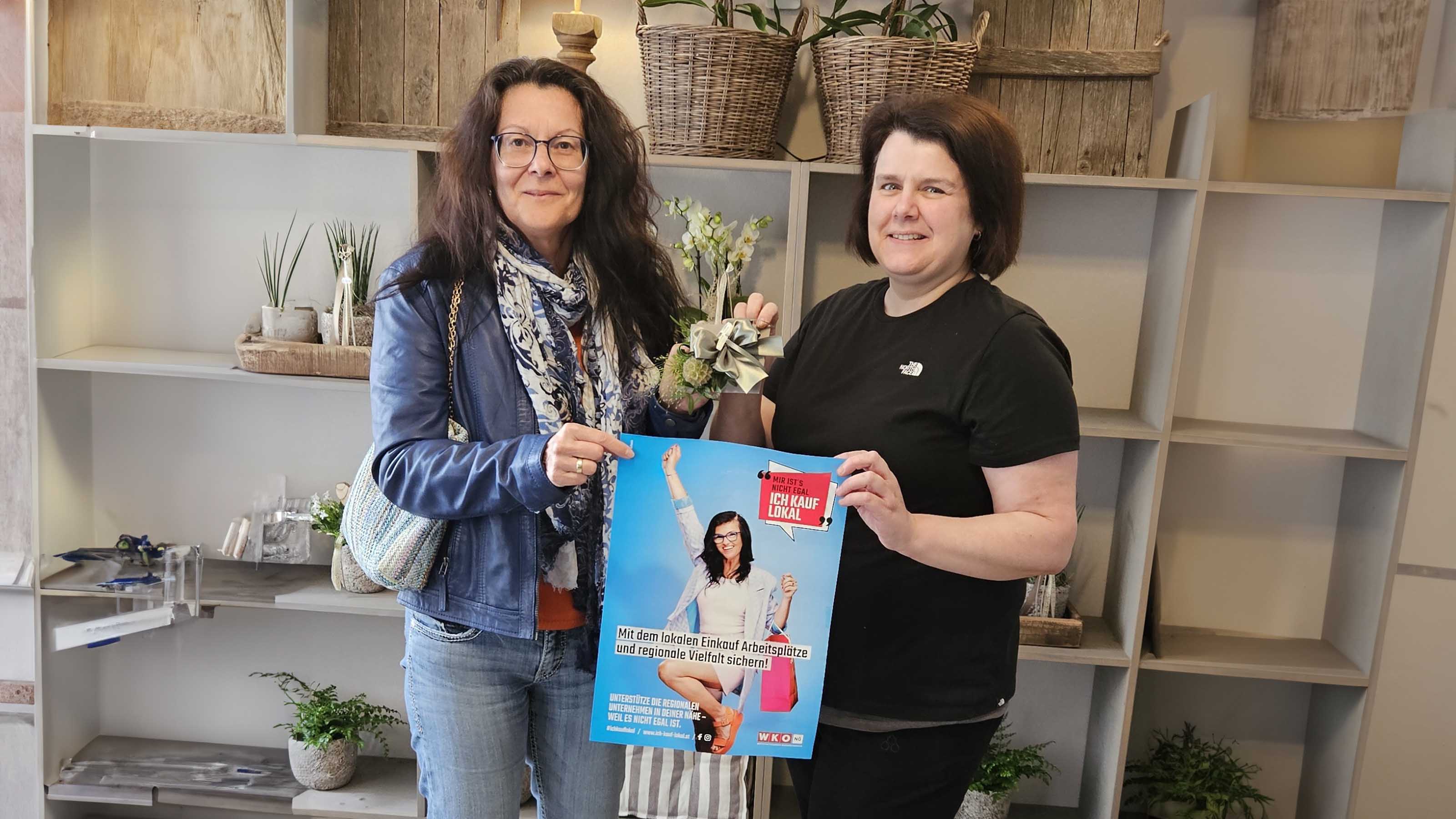 Im Rahmen der mehrjährigen Regionalitätskampagne #ichkauflokal der Wirtschaftskammer NÖ wurde der Valentinstag heuer zum Anlass für ein Gewinnspiel genommen. Verlost wurden insgesamt 23 Gutscheine zu je 40 Euro von niederösterreichischen Florist:innen. Im Bezirk Bruck hat Barbara Kaufmann einen 40€-Gutschein der Blumenhandlung Landblume gewonnen. Floristin Tarmina Elisabeth Koczor (r.) überreichte den Gutschein der glücklichen Gewinnerin und gratulierte gemeinsam mit WKNÖ-Bezirksstellenleiter Thomas Petzel zum Gewinn.