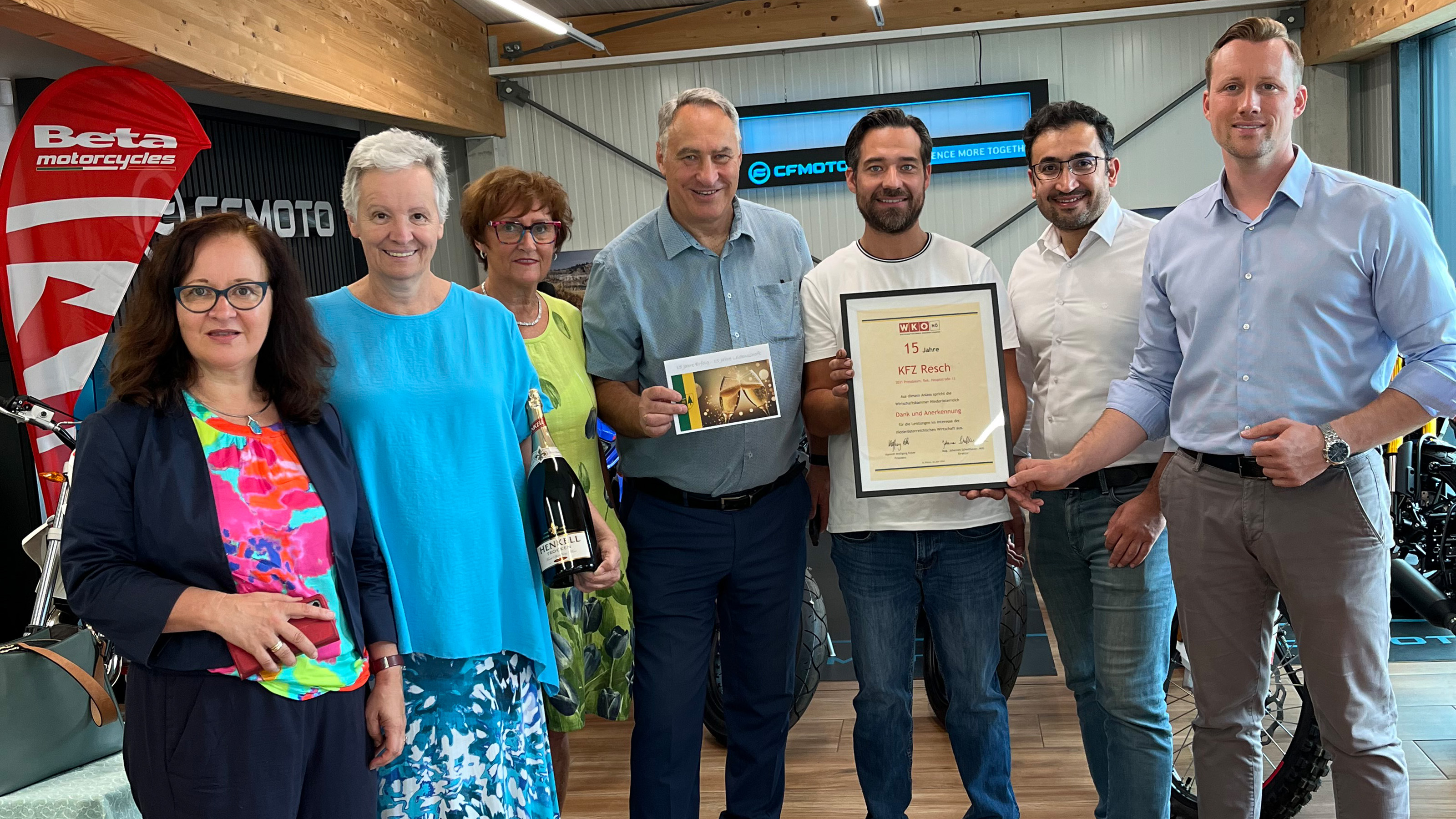 Sein 15jähriges Betriebsjubiläum feierte Michael Resch mit einem großen Fest. Er gründete damals sein KFZ Werkstatt der Kaiserbrunnstraße in Pressbaum und seit fünf Jahren hat er seinen Betrieb direkt neben dem Bahnhof in Rekawinkel neu gebaut. "Mein Team besteht derzeit aus 14 Mitarbeiterinnen und Mitarbeitern, im Herbst werden zusätzlich zwei Lehrlinge aufgenommen. Wir bieten unseren Kundinnen und Kunden neben unserem KFZ Service, auch ein Reifenlager und überwintern von Motorrädern an", so der Unternehmer. Zum Jubiläum gratulierten Bürgermeister Josef Schmidl-Haberleitner, Vizebürgermeisterinnen Jutta Polzer und Ingrid Burtscher, JW Purkersdorf Stellvertreter Stefan Melzer, WK-Außenstellenleiter Ramazan Serttas und wünschten weiterhin viel Erfolg.