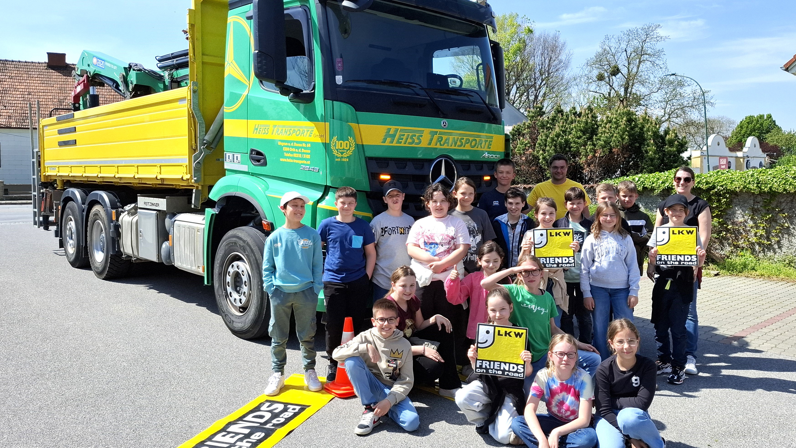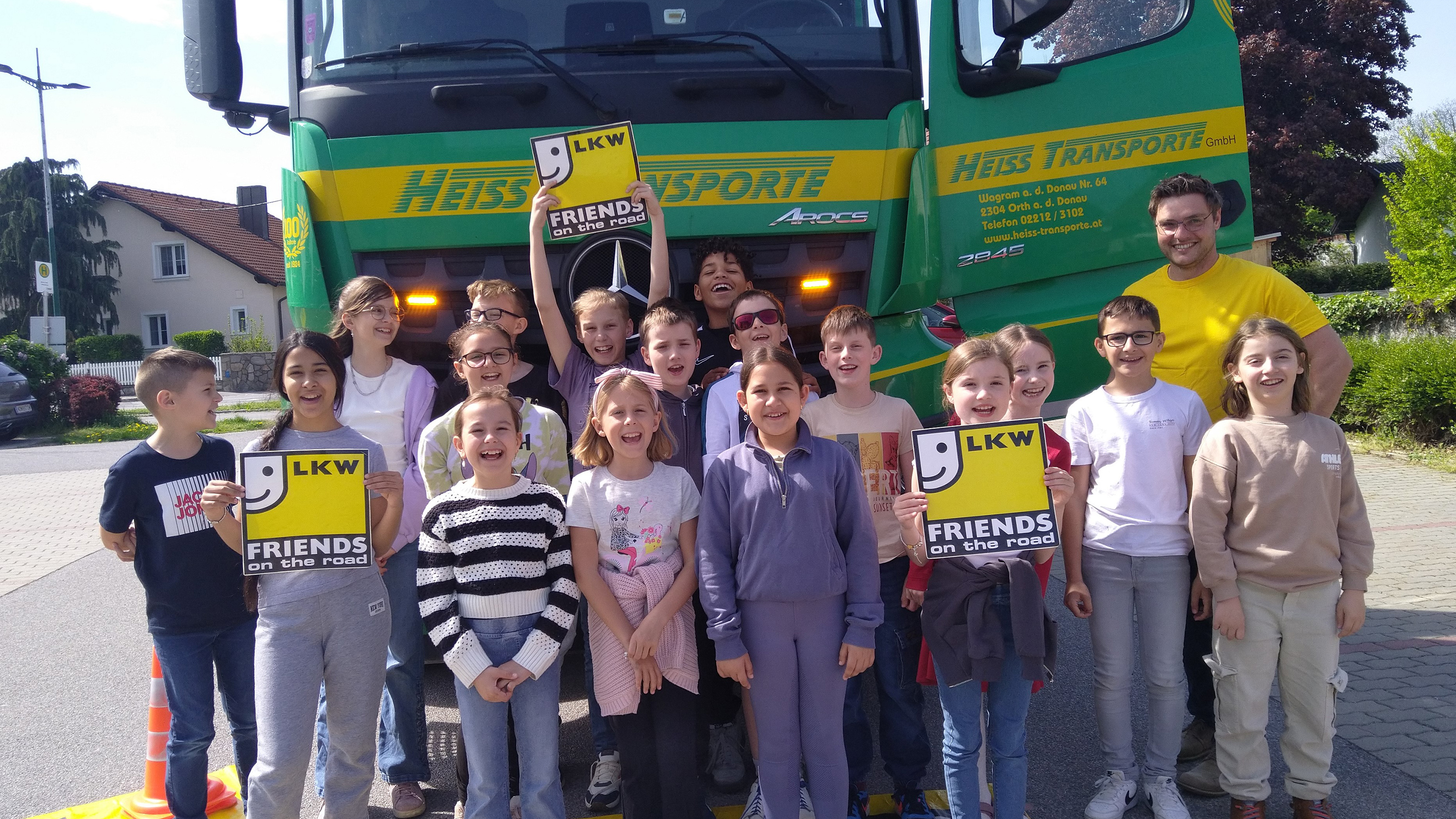 So besuchte auch ein Lkw der Karl Heiss Transport GmbH aus Wagram an der Donau die Volksschule Fischamender Straße in Bruck an der Leitha.