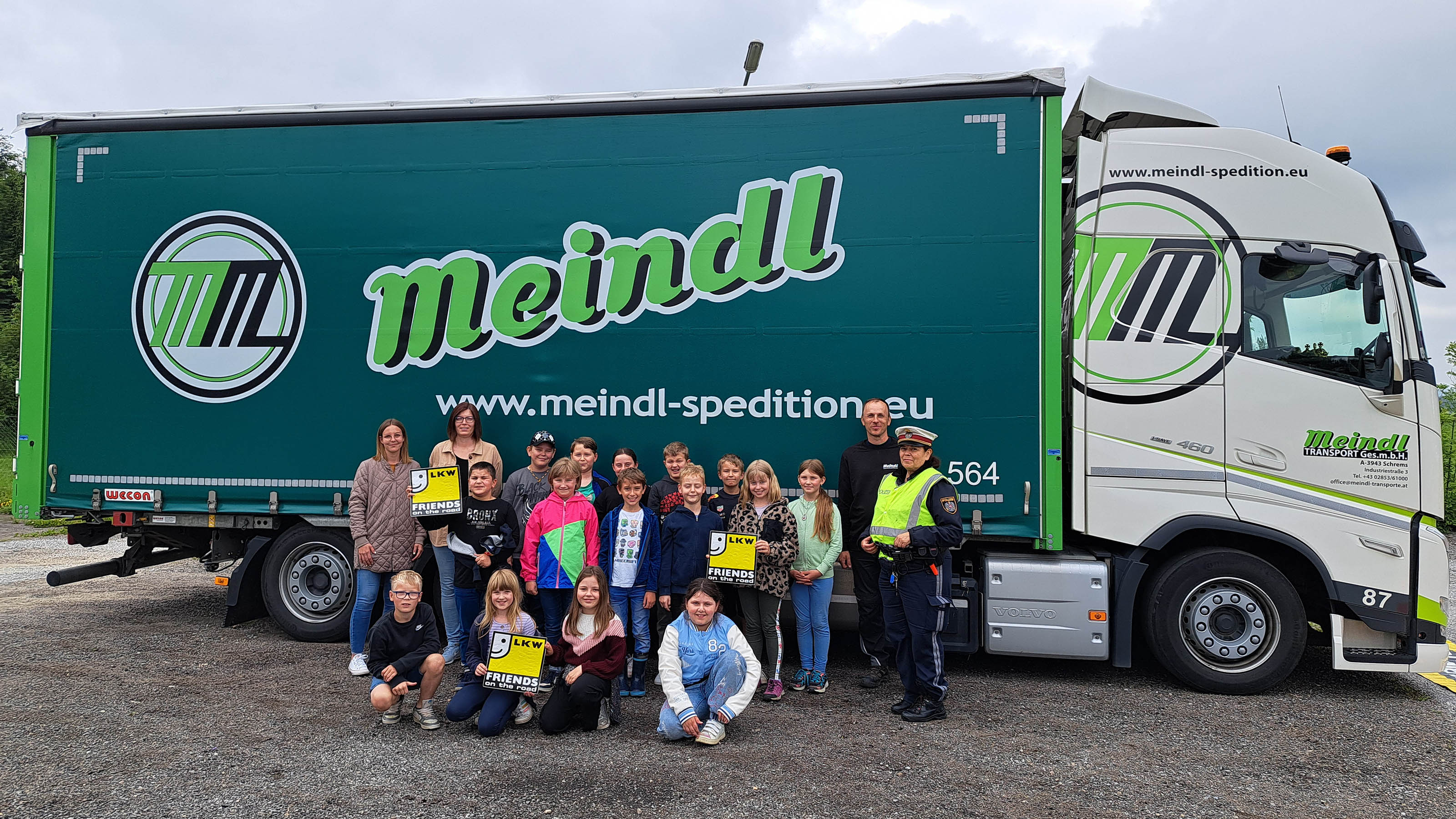 WKNÖ-Aktion: Lkw der Meindl Transporte bei der Volksschule Kirchberg am Walde – im Dienst der Verkehrssicherheit