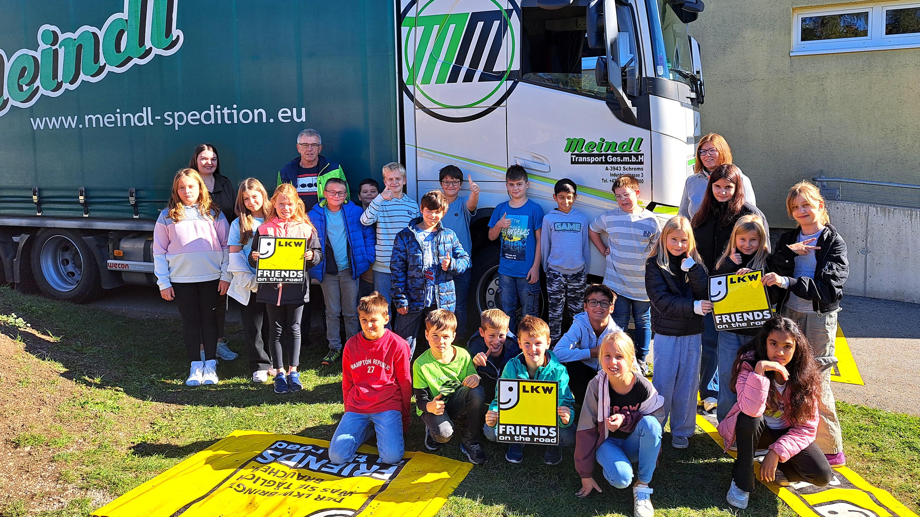 So besuchte auch ein Lkw der Meindl Transporte Ges.m.b.H. aus Schrems die Volksschule in Gmünd.