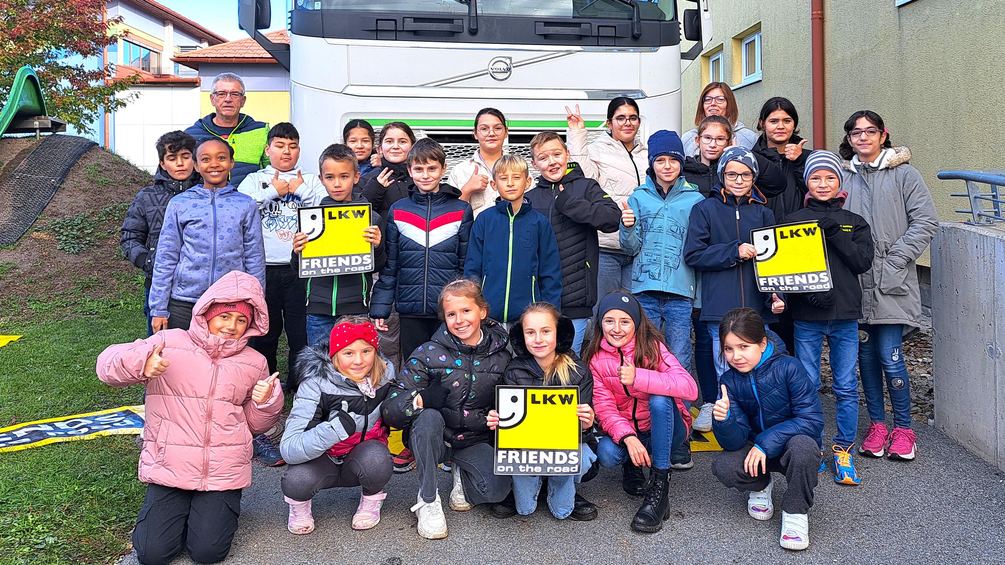 Die Aktion des NÖ Güterbeförderungsgewerbes hat im Herbst 2024 neuerlich Fahrt aufgenommen, um den Kindern Wissenswertes zum Lkw und besonders auch das Thema Sicherheit im Straßenverkehr näher zu bringen. Die teilnehmende Schule erhält eine Urkunde und wird als „besonders um die Verkehrssicherheit der SchülerInnen bemühte Einrichtung“ ausgezeichnet.