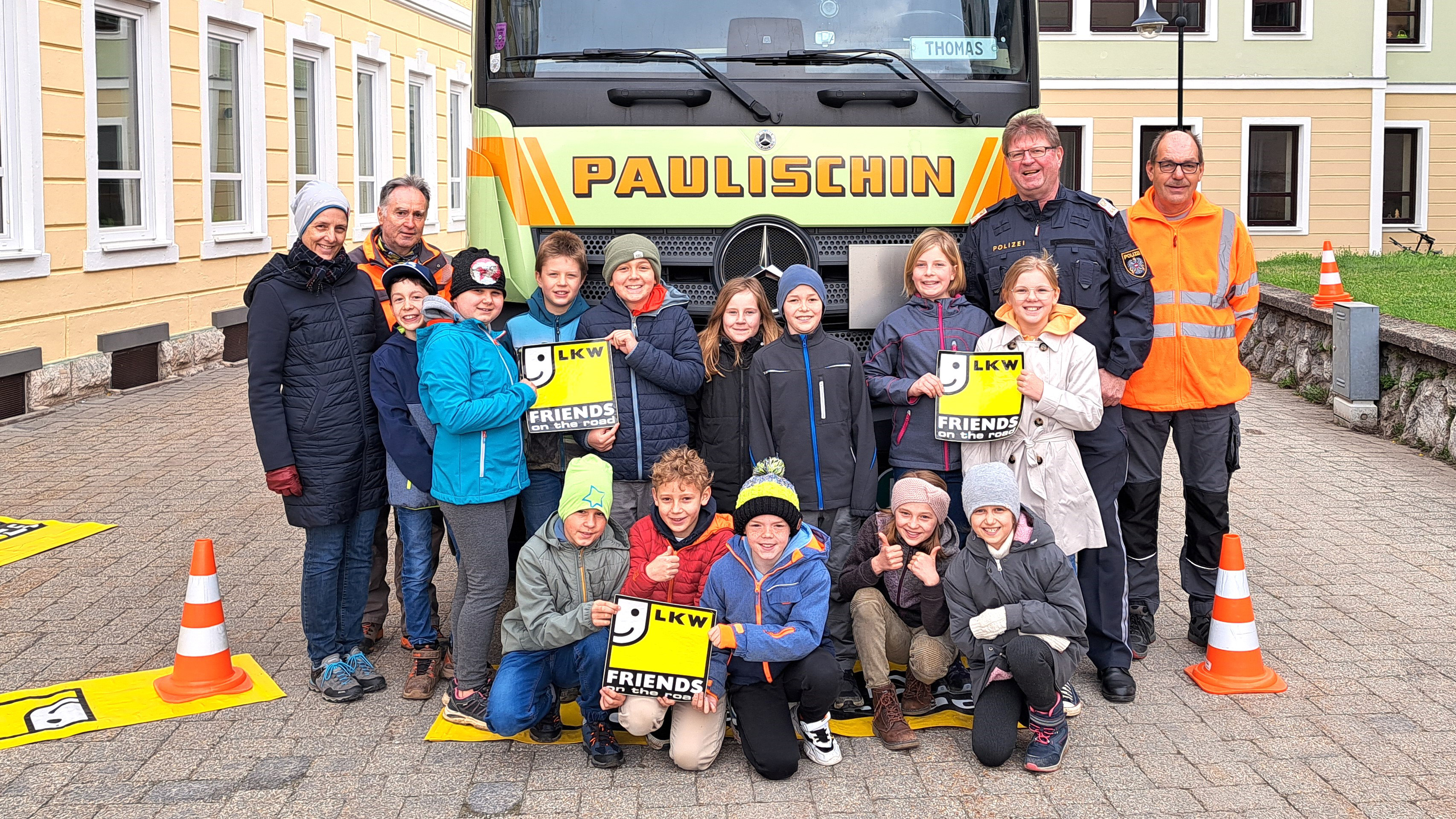 So besuchte auch ein Lkw der Paulischin Transporte aus Puchberg am Schneeberg die Volksschule im eigenen Ort.