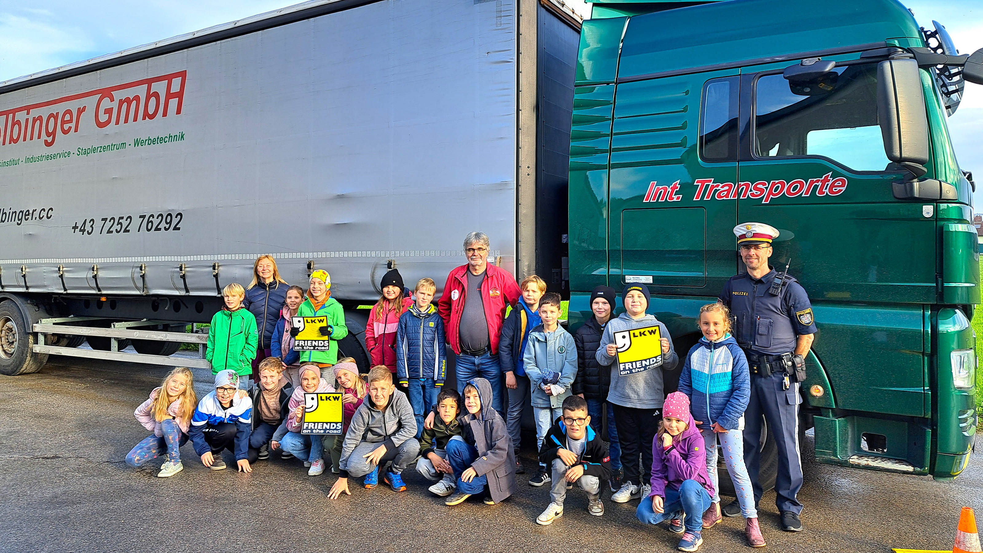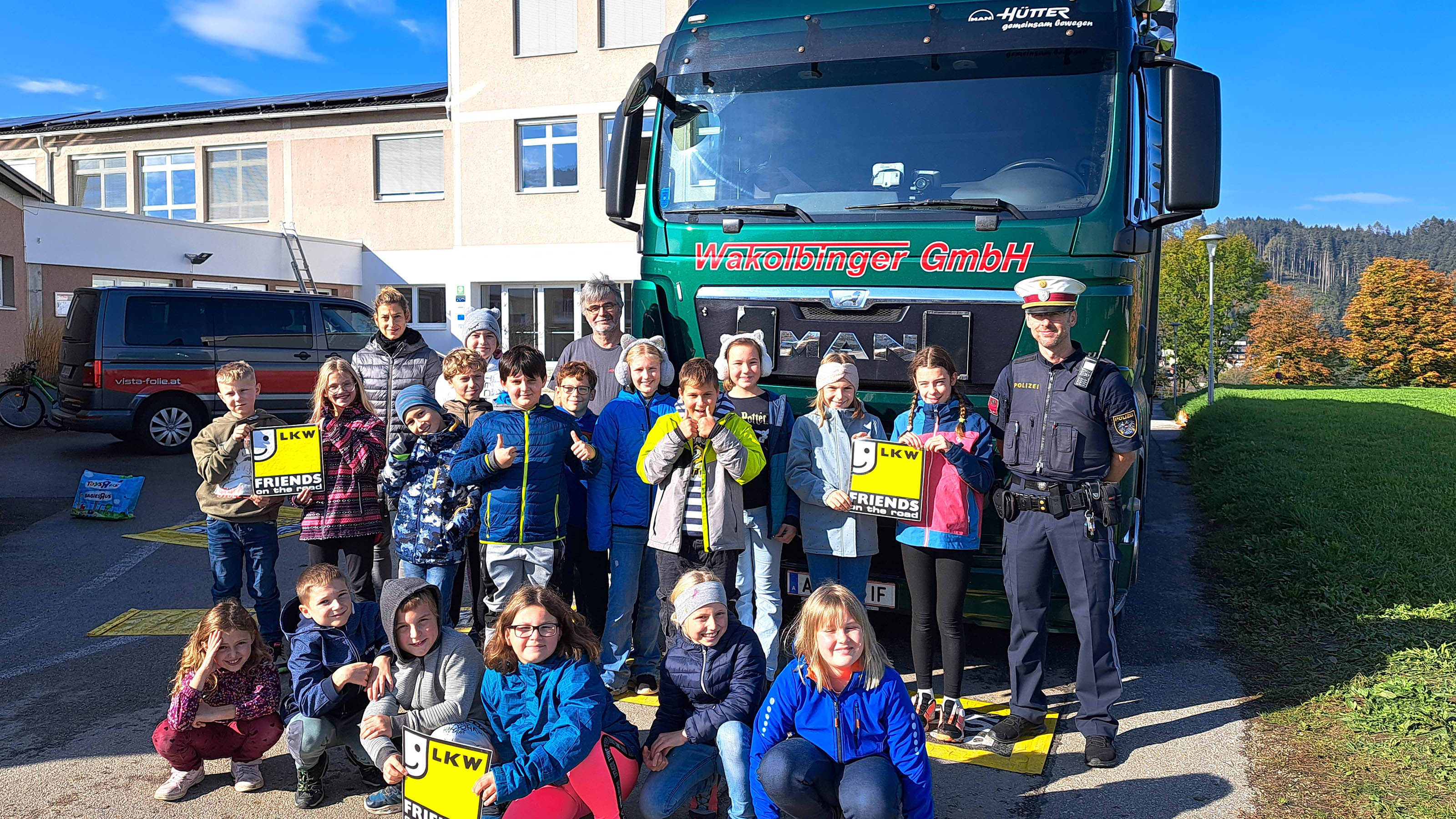 So besuchte auch ein Lkw der Wakolbinger GmbH aus Behamberg die Volksschule in Rosenau am Sonntagsberg. In je einem Workshop erarbeiteten die Kinder der 3. und 4. Klasse gemeinsam mit Firmeninhaber Karl Wakolbinger und Workshop-Leiterin Elke Winkler auf spielerische Art alles Wissenswerte zum Thema Lkw – besonderer Schwerpunkt dabei ist immer die Sicherheit im Straßenverkehr. Zu diesem Thema unterstützte auch die Polizei Kematen durch Revierinspektor Helmut Harreither.