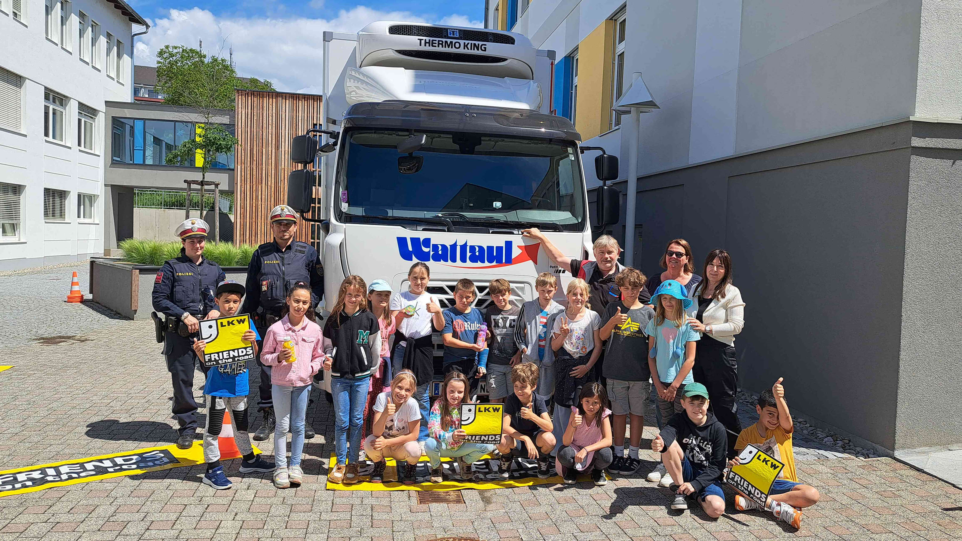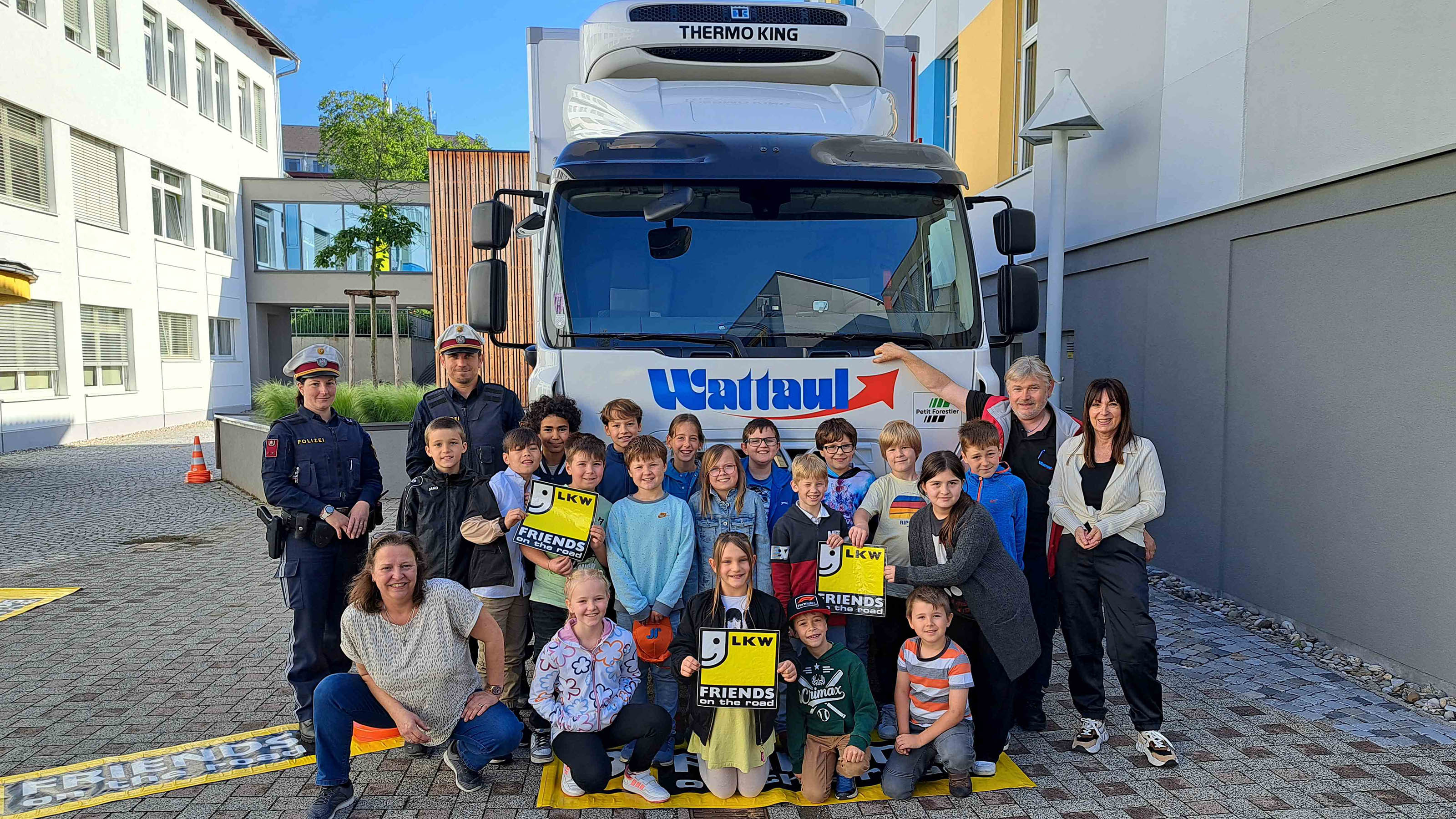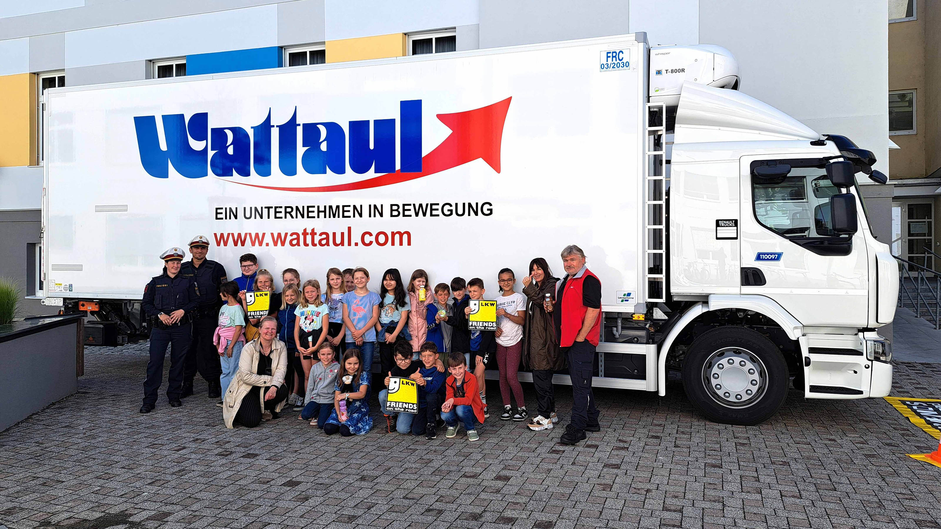 WKNÖ-Aktion: Lkw der Wattaul Transporte bei der Volksschule Melk – im Dienst der Verkehrssicherheit