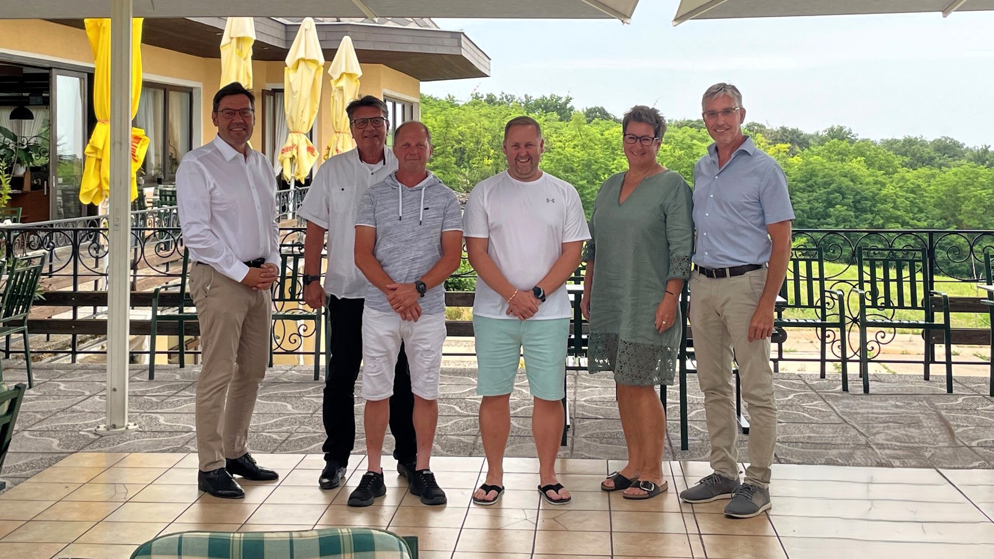 Im Zuge des Sommerfestes des Steinmetzmeistertriebes Ing. Gernot Krippel wurden zwei Mitarbeiter für ihre 30-jährige Treue und für ihr Engagement geehrt. Herr Thomas Maurer und Herr Andreas Wojatschek erhielten Urkunden und Präsente von Bezirksstellenobmann Andreas Hager, Reinhard Kosik und Gernot Krippel. Bei einem geselligen Abend konnte als Draufgabe der tolle Ausblick vom Restaurant am Steinberg "Zum Wirt'n" genossen werden.