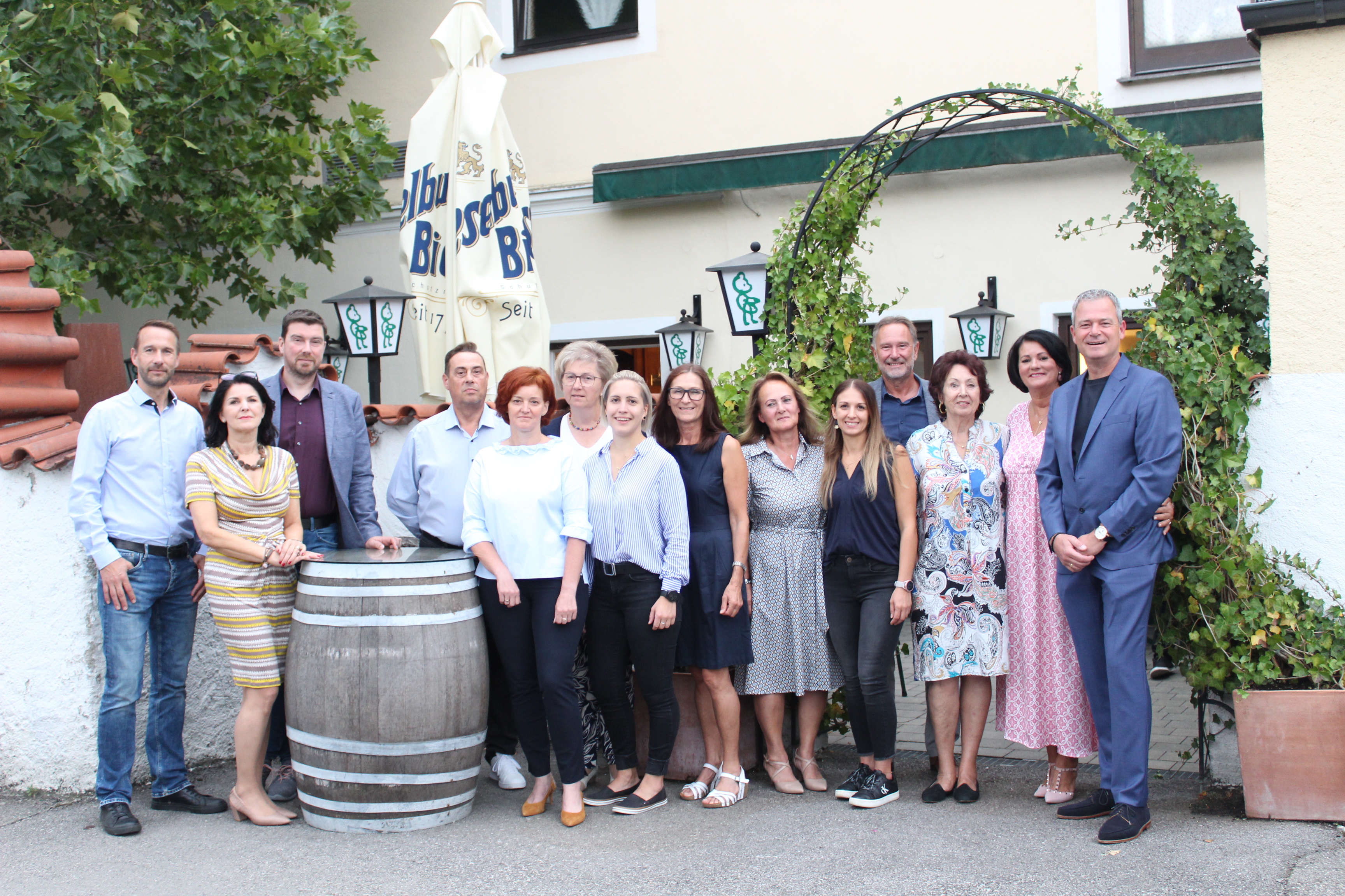 Im feierlichen Rahmen wurden beim Bärenwirt in Petzenkirchen die Mitarbeiter der Firma Moser Wurst aus Wieselburg geehrt: Geschäftsführer Florian Pfeiffer, Irmtraud Moser, WK-Bezirksstellenleiter Augustin Reichenvater, Thomas Neuhauser (25 Jahre), Renate Brunnbauer (35 Jahre), Anita Teufl (25 Jahre), Simone Spandl und Christa Lienbacher (beide 15 Jahre), Rosemarie Reiter und Olma Tabita (beide 10 Jahre), AK-Bezirksstellenleiter Helmut Wieser, Helga Moser sen. Michael Moser mit Gattin Helga (v.l.)