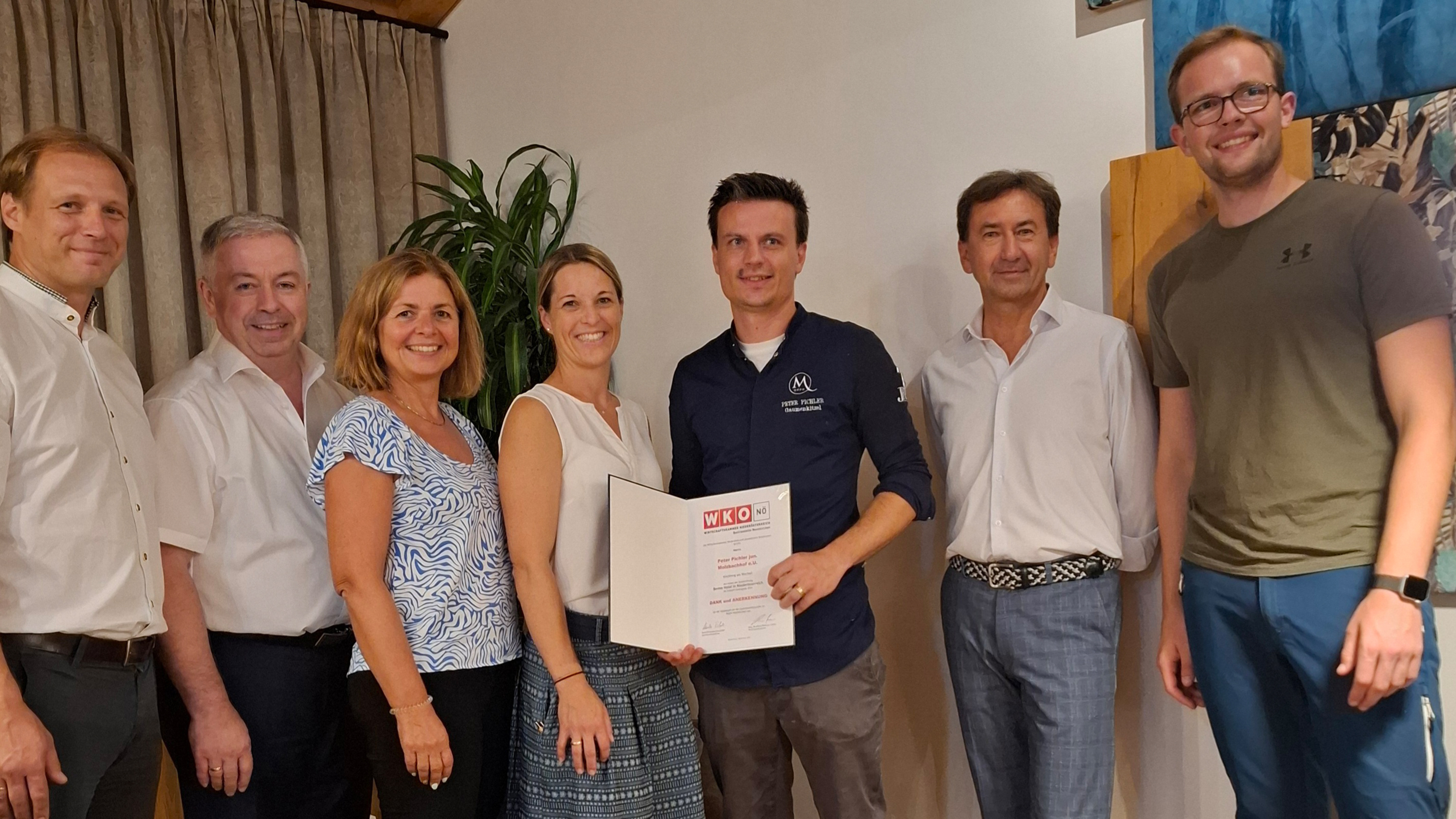 Bezirksstellenobfrau Monika Eisenhuber, Hotellerie Obmann-Stv. Peter Pichler, SO Bezirksstellenausschussmitglied Franz Kirnbauer, JW-Vorsitzender Lukas Kurz und Bezirksstellenleiter Bernhard Dissauer-Stanka gratulierten zu dieser Auszeichnung und wünschten dem gesamten Team weiterhin viel Erfolg.