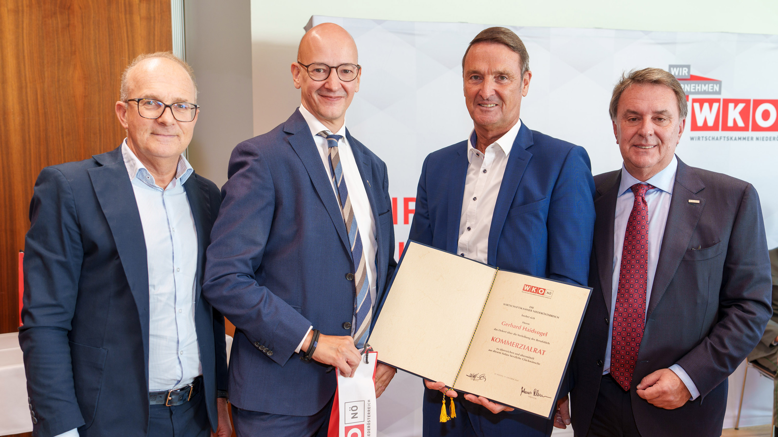 WKNÖ-Präsident Ecker gratuliert Gerhard Haidvogel zum Kommerzialrat