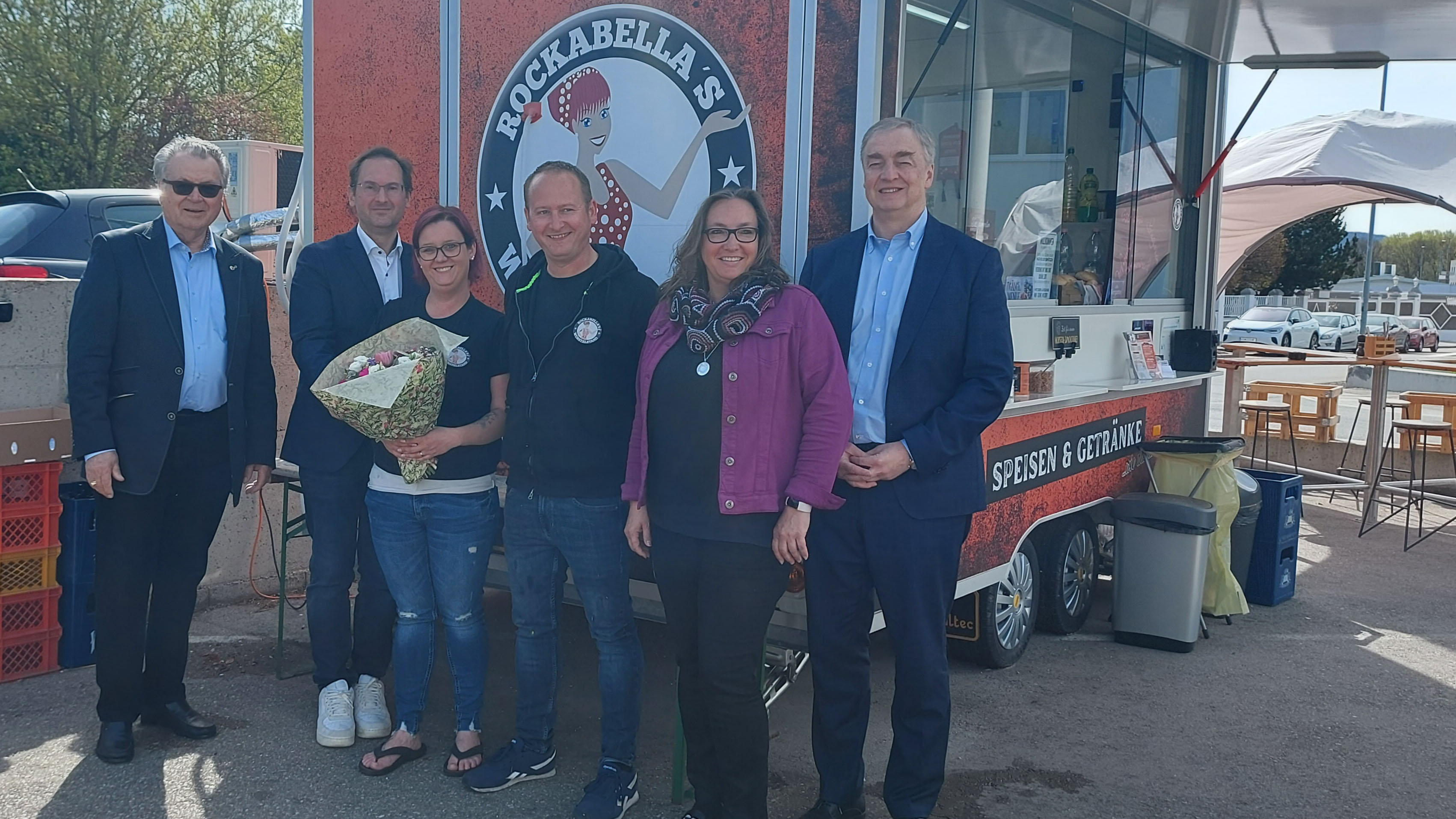 FIW-Bezirksvorsitzende Sabine Danzinger, Bezirksstellenobmann Andreas Minnich und Vizepräsident Christian Moser gratulierten zum Sprung in die Selbstständigkeit und wünschten “Rockabella`s Würstelstand” und dem nett gestalteten Schanigarten weiterhin viel Erfolg!