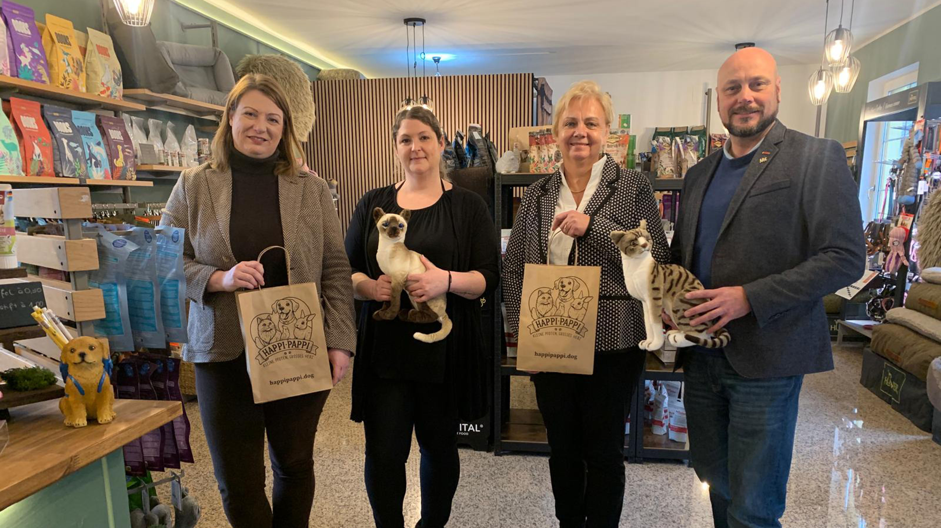 Bezirksstellenobmann Martin Fürndraht gratulierte gemeinsam mit Bürgermeisterin Andrea Kö den beiden Unternehmerinnen Birgit Kratky und Marina Renner zur Eröffnung ihres Geschäftes in der Adam-Strenninger-Gasse 1. Birgit Kratky vertreibt hochwertiges Tierfutter und exklusives Zubehör für Tiere. Marina Renner bietet professionelle Fellpflege exklusiv für Katzen im Salon oder mobil zu Hause bei den Kunden an. Die beiden Unternehmerinnen bieten eine ideale Symbiose in ihrer Branche.