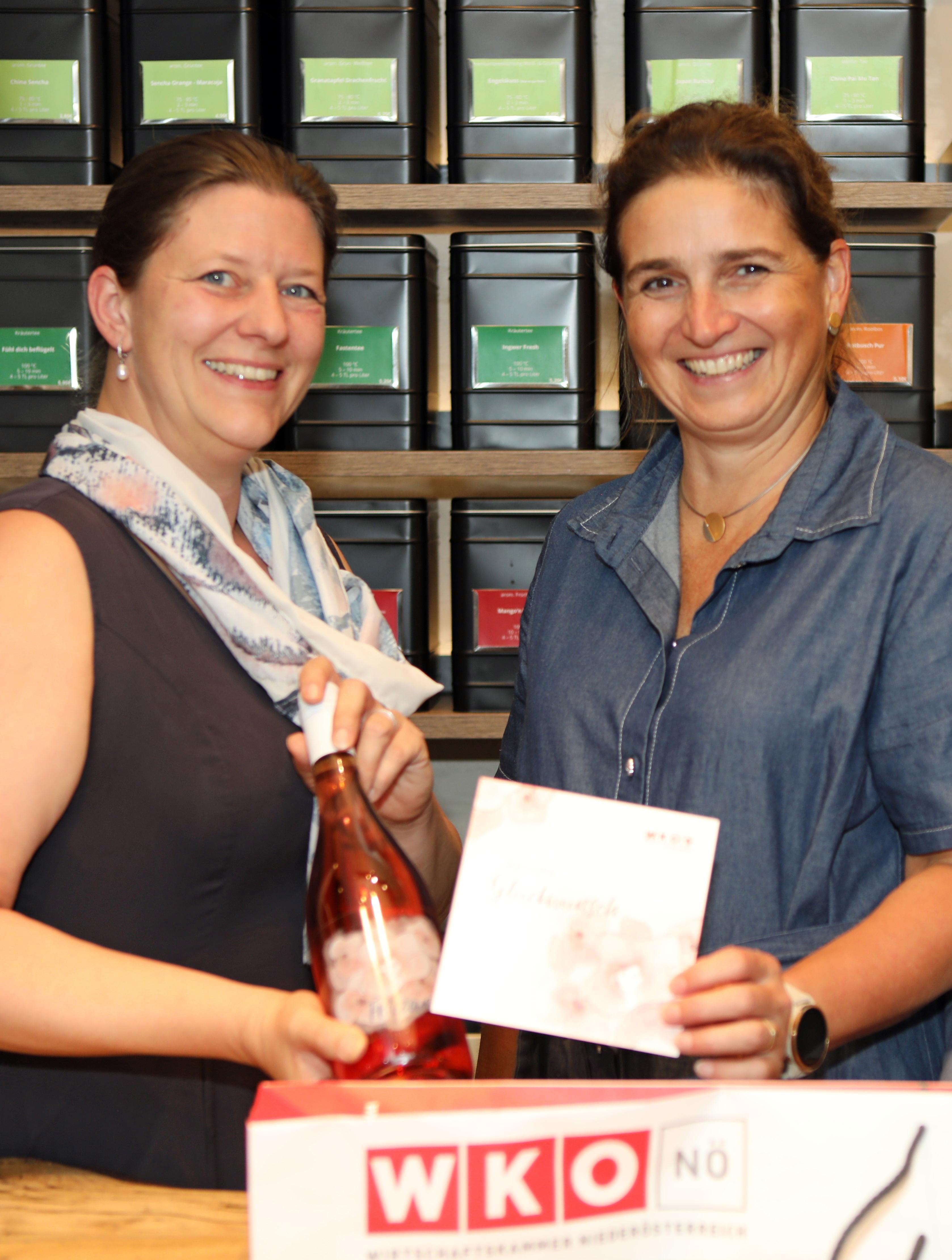 FiW Bezirksvertreterin Linda Bläuel gratulierte Susanna Kittinger zum 15-jährigen Bestehen ihres Geschäftes „Wohnen & Schenken“ in St. Andrä-Wördern.