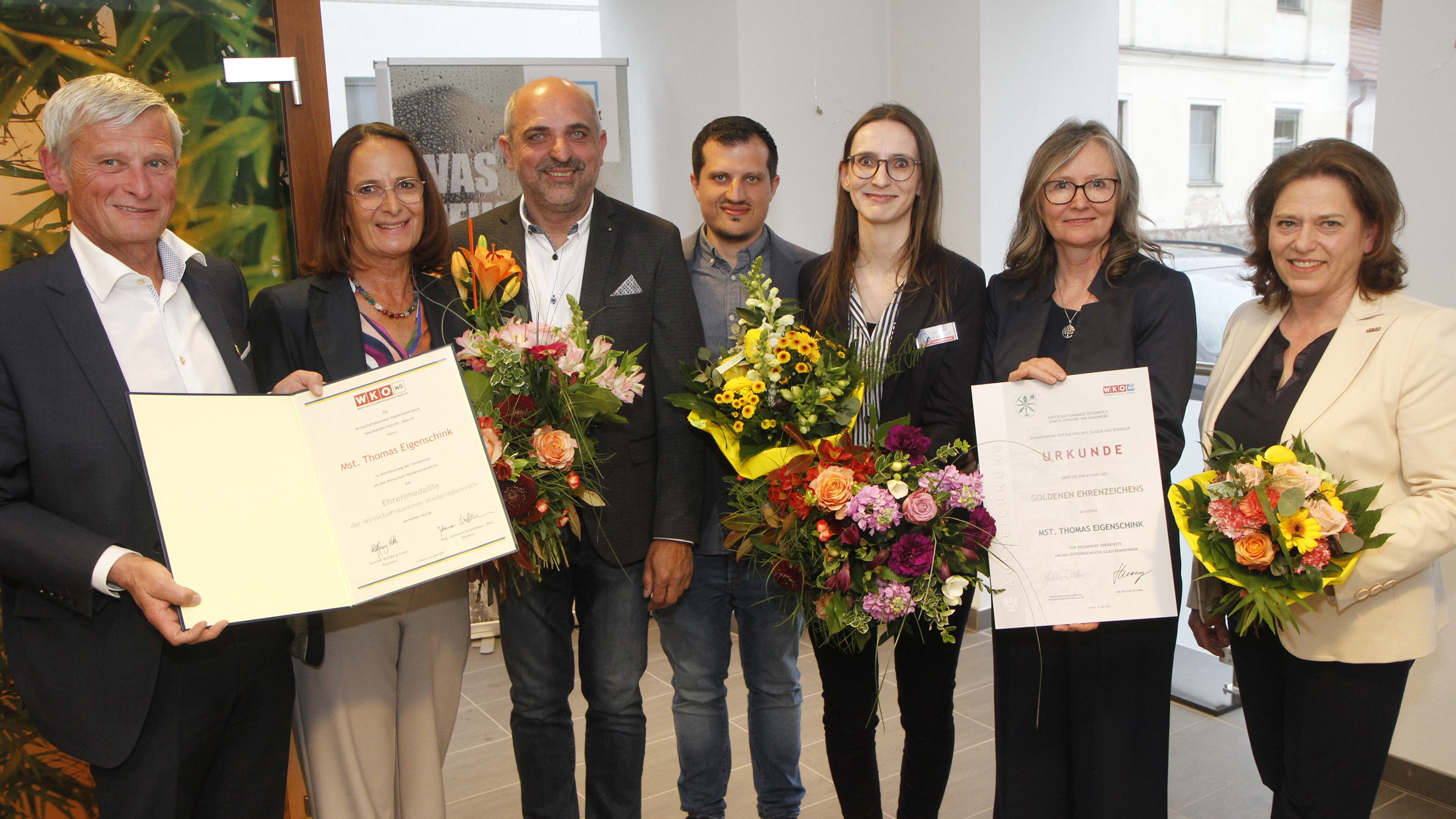 Als Gratulanten stellten sich unter anderem Innungsmeisterin KommR Mst.in Claudia Irene Marton (Glaser), Bezirksstellenobfrau KommR Doris Schreiber und Bezirksstellenleiter Andreas Krenn ein. Sie wünschten Familie Lunzer alles Gute für die Zukunft und bedankten sich bei Thomas Eigenschink und seiner gesamten Familie für ihr Engagement und den unermüdlichen Einsatz für die heimische Wirtschaft.
