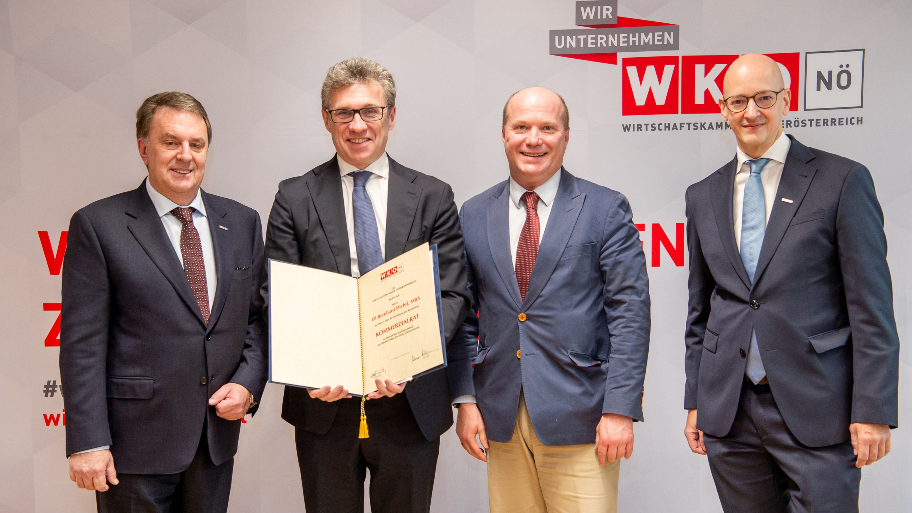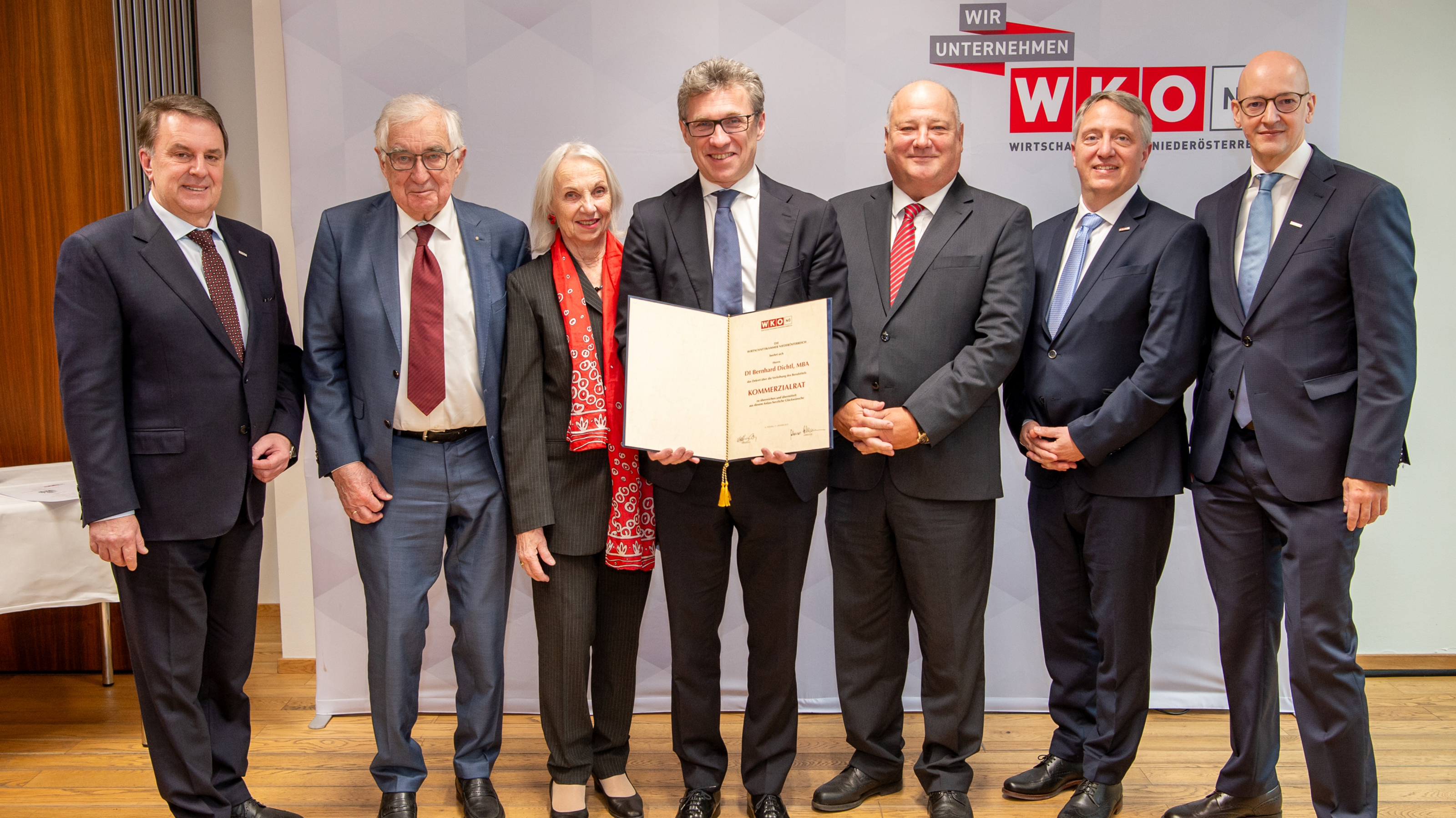 Als verdienter Vertreter der Wirtschaft wurde Bernhard Dichtl von der Wirtschaftskammer dafür vorgeschlagen - durch die Entschließung von Bundespräsident Alexander Van der Bellen ist der Geschäftsführer der Georg Fischer Fittings GmbH (Traisen) berechtigt, den Berufstitel „Kommerzialrat“ zu führen. WKNÖ-Präsident Wolfgang Ecker gratulierte Bernhard Dichtl bei der feierlichen Überreichung des Dekrets.