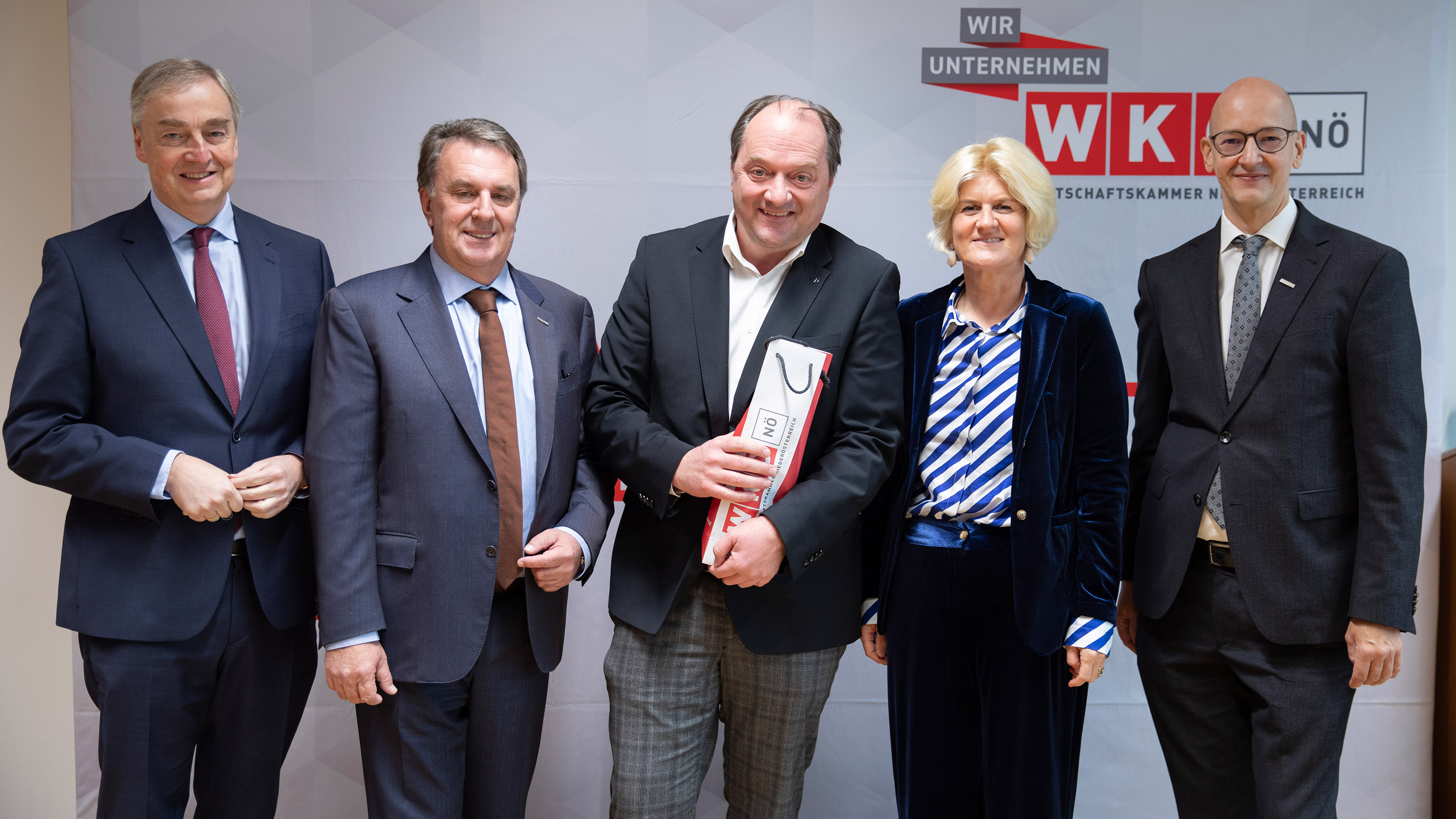 Verdienter Unternehmer für sein Wirken gewürdigt: WKNÖ-Präsident Wolfgang Ecker gratuliert Wolfgang Kessler zum Kommerzialrat