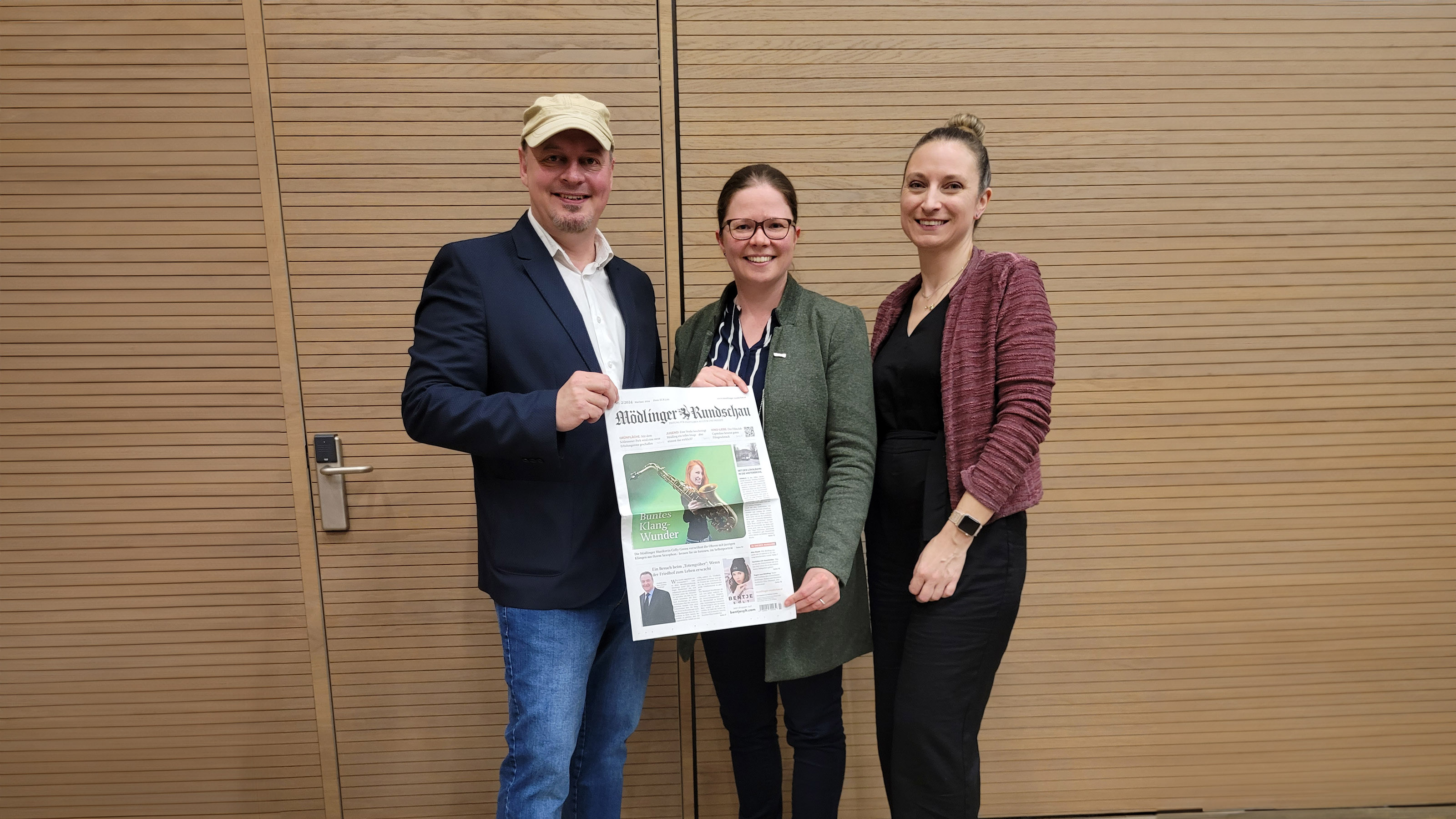 WK-Mödling Bezirksstellenleiterin Andrea Lautermüller gratulierte Matthias Greuling und Katharina Sartena zur Gründung der neuen Monatszeitung „Mödlinger Rundschau“. „Die Zeit der Zeitung ist noch nicht vorbei“, so Herausgeber Matthias Greuling. Die Mödlinger Rundschau soll sechs bis zehn Mal jährlich über das Leben im Bezirk Mödling berichten. Die neue Zeitung ist in allen Trafiken im Bezirk Mödling oder via Abo erhältlich.