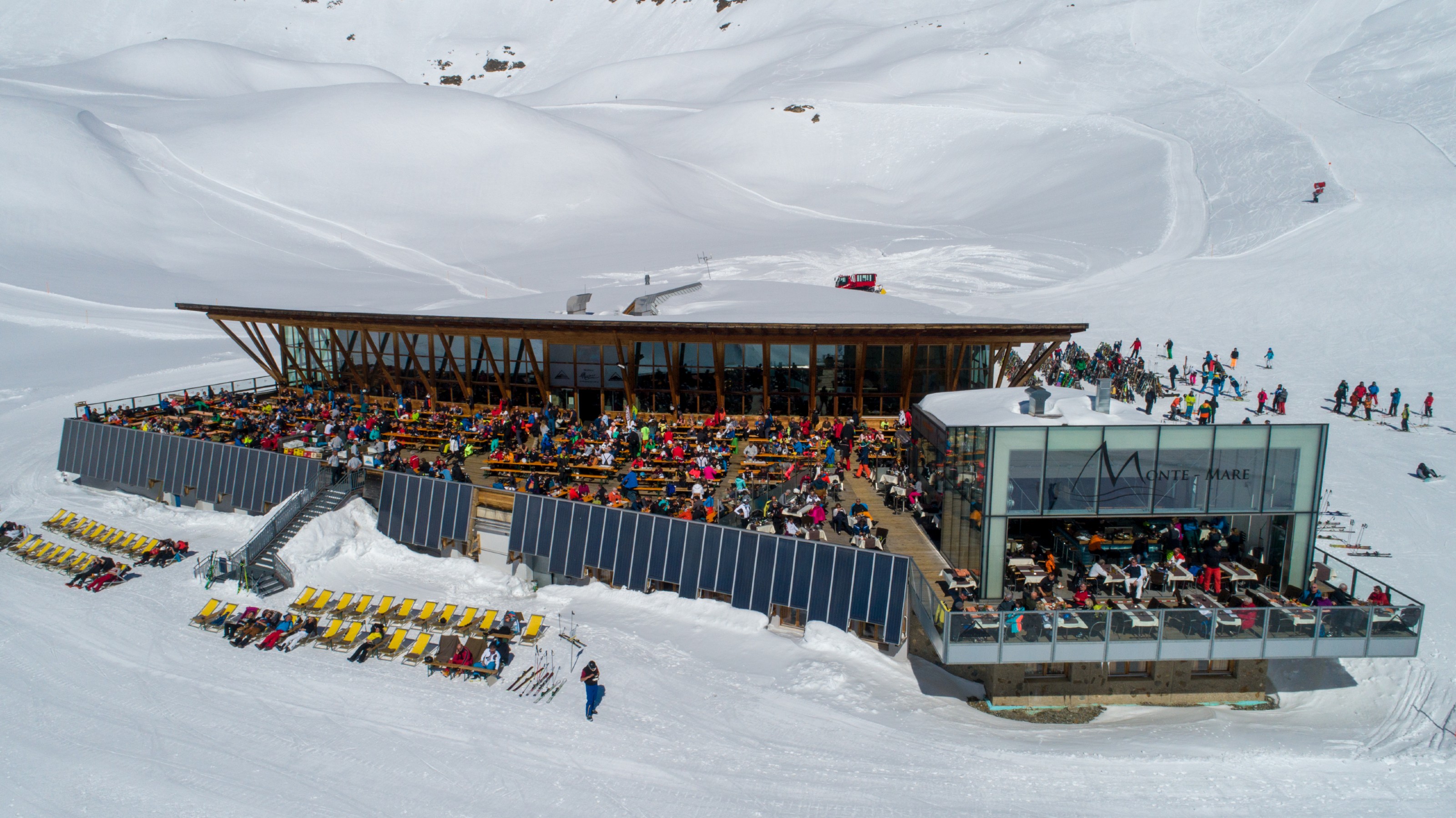 Tirol. Das Panoramarestaurant auf 2.450 m Höhe benötigt weniger als ein Viertel der Heizwärme eines vergleichbaren herkömmlichen Gebäudes. Übers Jahr liegt der Heizwärmebedarf des Restaurants, das zu Stoßzeiten 2000 Personen beherbergt, gerade bei einem Einfamilienhaus! Das gesamte Gebäude ist mit sehr hohen Dämmstoffstärken versehen. Um die notwendige Energiezufuhr auf ein Minimum zu senken, wurde die Möglichkeit der Wärmespeicherung in den massiven Bauteilen für die Grundheizung des Gebäudes genutzt. Direkte Sonneneinstrahlung durch große Fensterflächen, eine Solaranlage von 120 m2 und sogar die Besucher selbst dienen als Wärmelieferanten. Eine kontrollierte Lüftungsanlage hält mittels eines Wärmetauschers die Wärmeverluste äußerst gering und garantiert eine konstante Raumtemperatur. Die große Solaranlage dient vor allem auch der Warmwasserbereitung. Für diese Umsetzung erhielt die Skihütte Masner sogar den Energy Globe Austria Award.