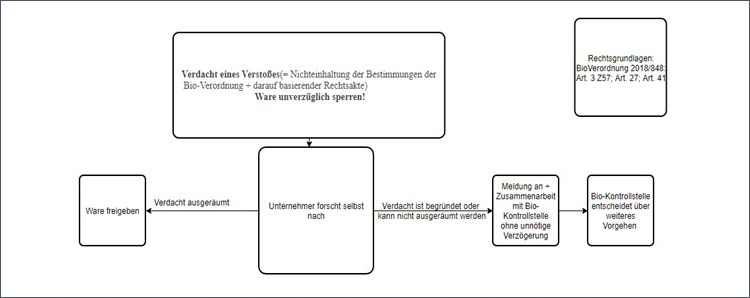 Wenn Lebensmittelhändler:innen von Bioprodukten den Verdacht haben, dass die einschlägigen Gesetze nicht eingehalten werden ist folgendermaßen vorzugehen: