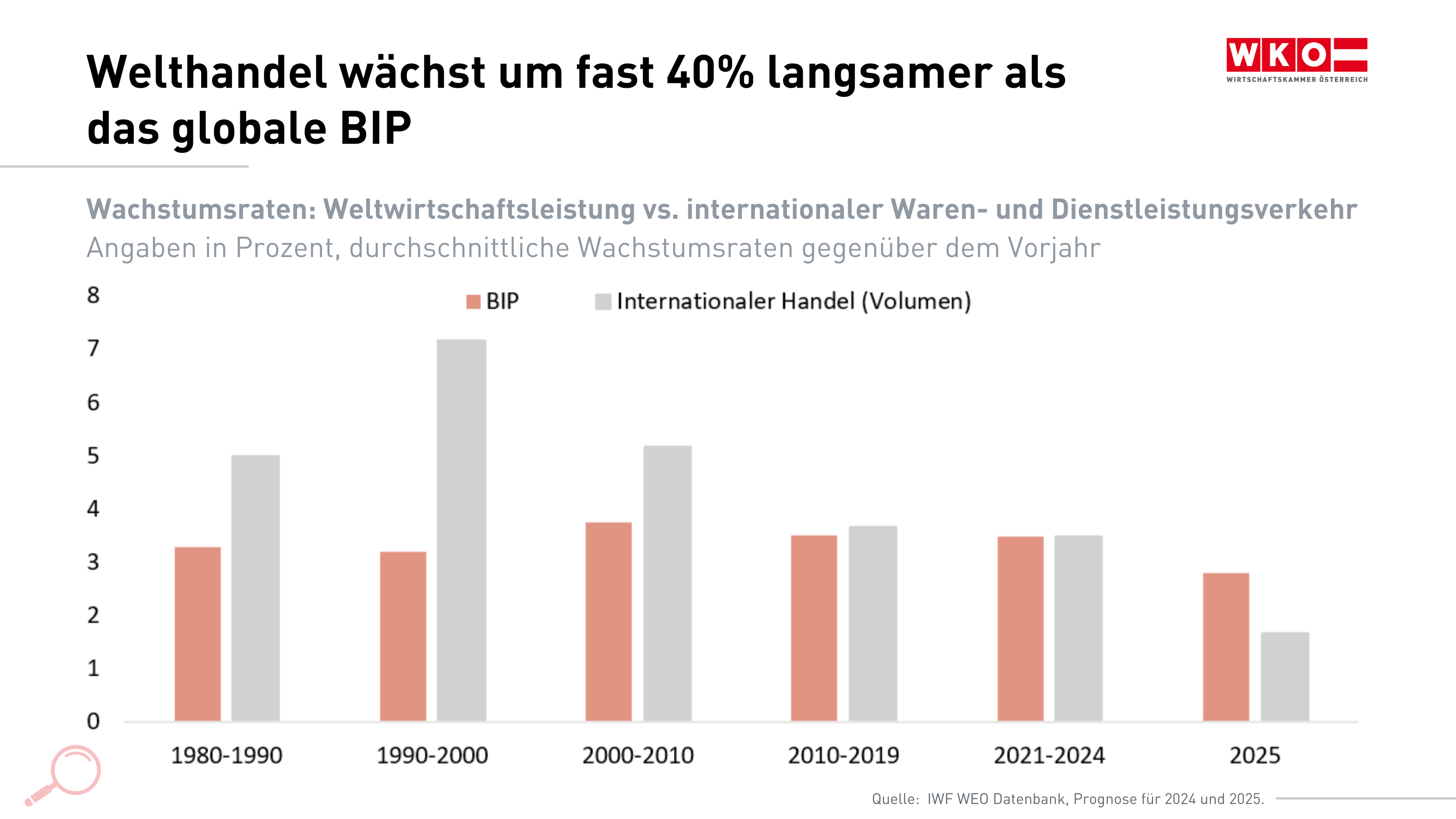 Der internationale Handel war über Jahrzehnte ein Motor globalen Wohlstands. Während der Liberalisierungsphase zwischen den 1980ern und frühen 2000ern wuchs der Welthandel im Schnitt 50% schneller als die Weltwirtschaftsleistung. Als kleine, offene Volkswirtschaft profitierte Österreich besonders stark: Die geschätzten Vorteile dieser internationalen Einbindung seit den 1950er-Jahren lassen sich laut WIFO auf nahezu ein Drittel des österreichischen Pro-Kopf-Einkommens beziffern.
