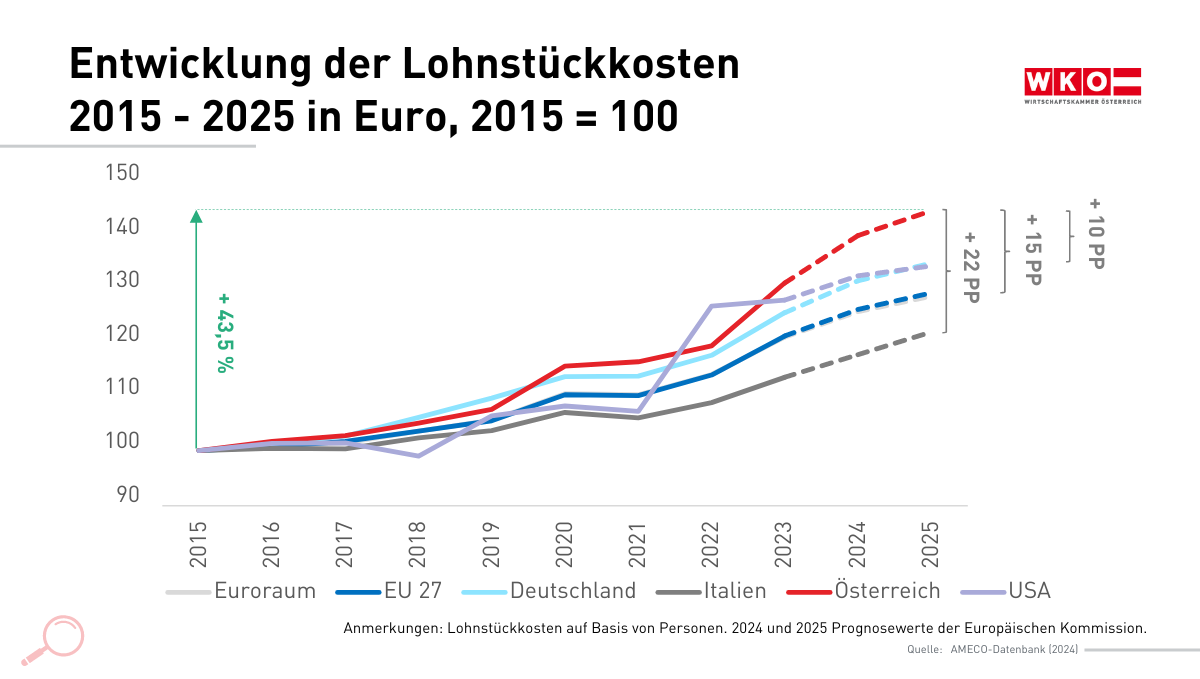 Lohnstückkosten steigen mit +43,5 % in Österreich deutlich stärker als bei wichtigen Handelspartnern