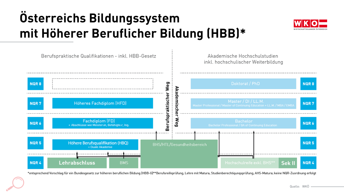 Am 1. Mai 2024 tritt das Gesetz zur Höheren Beruflichen Bildung (HBB) in Kraft. Österreichs Bildungssystem erhält damit eine völlig neue Säule der formalen höheren Bildung: Künftig wird es möglich, auf berufspraktischem Weg zu anerkannten tertiären Bildungsabschlüssen zu kommen – ohne Umweg über eine Uni oder Hochschule.