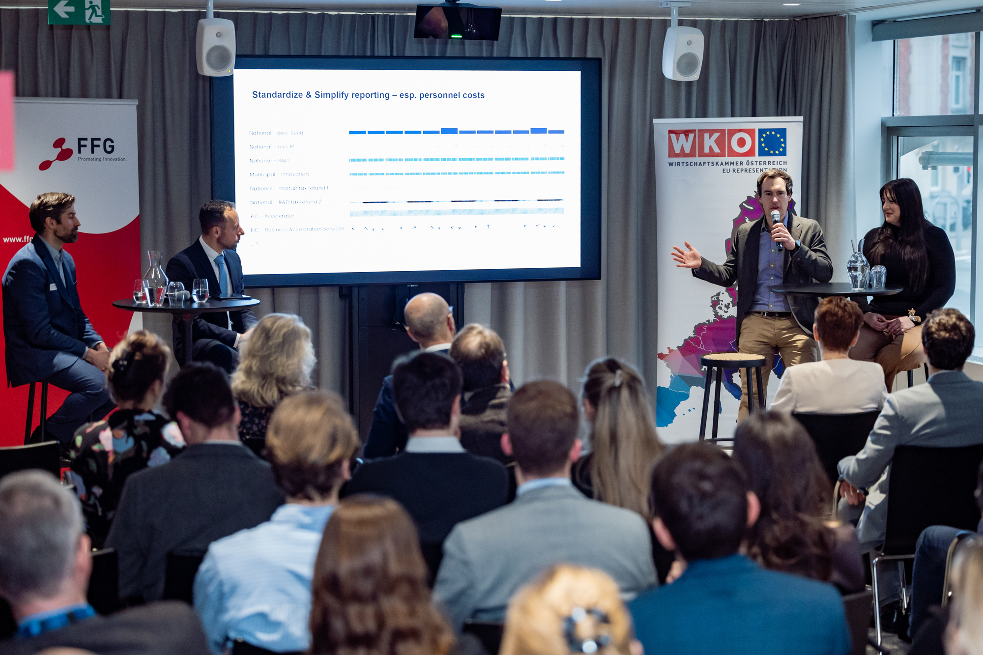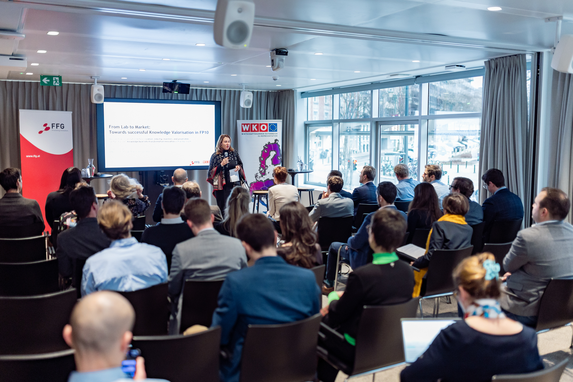 Gemeinsam mit der Österreichischen Forschungsförderungsgesellschaft (FFG) veranstaltete die Abteilung Innovation und Digitalisierung der Wirtschaftskammer Österreich (WKÖ) am 22. Jänner 2026 in der EU Representation der WKÖ im Haus der Österreichischen Wirtschaft (AT60) in Brüssel ein Event, das Vertreter:innen aus EU‑Institutionen, Wissenschaft, Start-ups und Unternehmen zusammenbrachte. Diskutiert wurde, wie Forschungsergebnisse im Kontext von Horizon Europe wirksamer in marktfähige Produkte und Dienstleistungen überführt und europäische forschungs- und innovationspolitische Zielsetzungen besser mit den Realitäten von Forschenden, jungen Unternehmen und etablierten Betrieben verknüpft werden können.