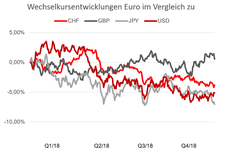 Die Wechselkursentwicklungen zeigen 2018 ein sehr volatiles Bild – der Euro schwächte sich ab