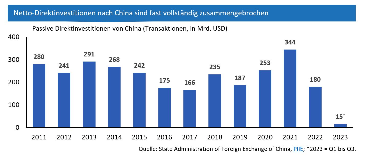 Das impliziert, dass ausländische Unternehmen nicht nur ihre Gewinne nicht mehr reinvestieren, sondern auch bestehende Fabriken, Bürogebäude etc. verkaufen und Gelder zurückführen. Der Handelsüberschuss gegenüber der EU dient China als Ausgleich für die Kapitalabflüsse der vergangenen Monate. Allerdings deuten die FDI-Ströme auf eine gewisse Entfremdung westlicher Unternehmen vom Standort China hin, die sowohl auf die repressive Wirtschaftspolitik der Kommunistischen Partei zurückzuführen sein könnte als auch auf konkrete europäische Anstrengungen zur Risikosenkung
