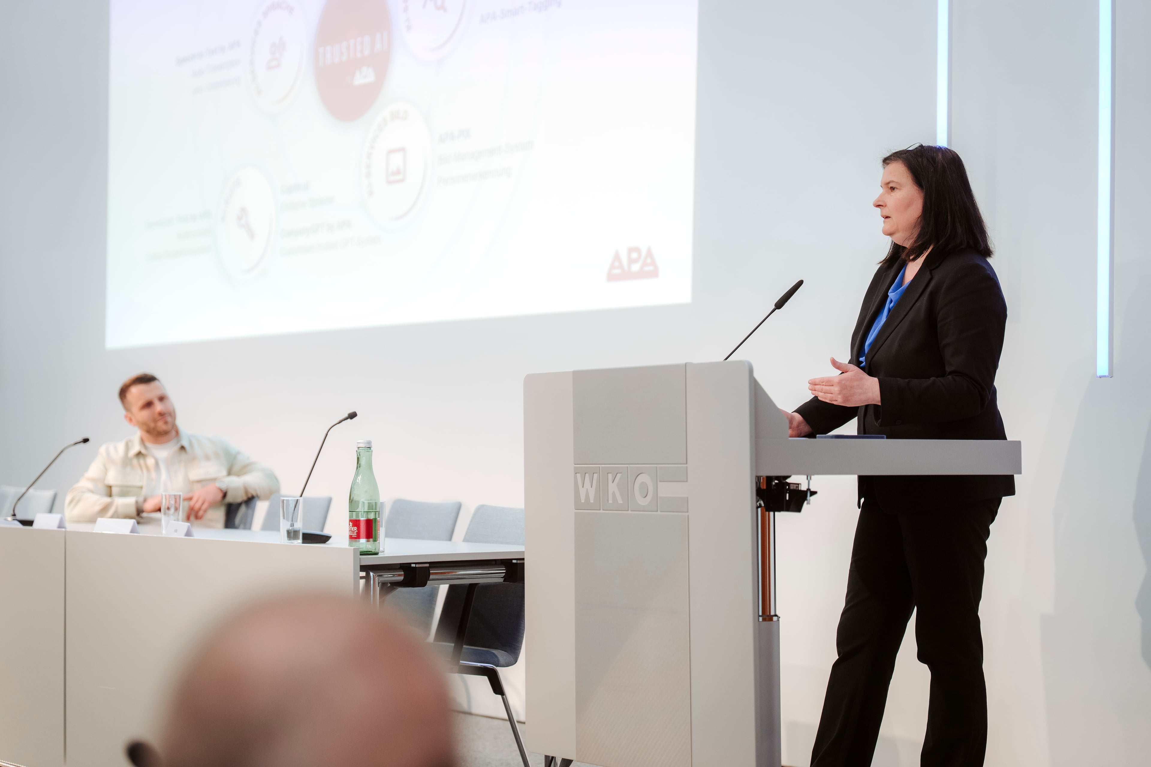 Perspektiven für den künftigen Einsatz von KI eröffnete das zweite Panel: Eric Weisz, Gründer der Planungsplattform Circly, führte vor, wie der KI-Einsatz Absatzprognosen im Handel treffsicherer macht - und dadurch Fehlplanungen oder Ressourcenverschwendung verhindert und Margen verbessert. Der Dialog Mensch-Maschine ist das Thema von Andreas S. Rath, der mit der 2017 gegründeten Wiener Firma ONDEWO Call-Center-AI-Plattformen entwickelt, bei denen KI-Agenten Anfragen und Anrufe entgegennehmen, analysieren und übergeben. Wie sich die Nachrichtenagentur APA zum Technologielieferanten mit breitem "Trusted-AI"-Portfolio weiterentwickelt, stellte Verena Krawarik (APA und Mitglied des KI-Beirates) dar.