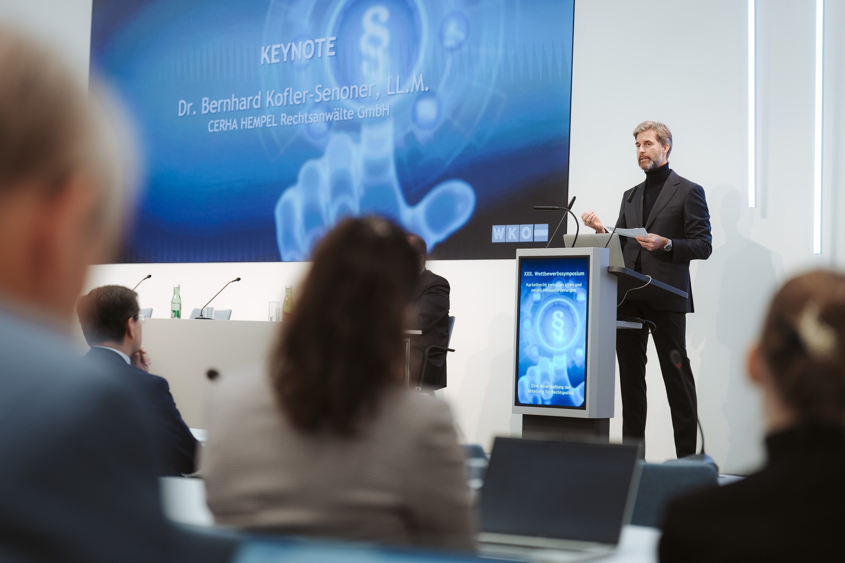 In seiner Keynote betonte Dr. Bernhard Kofler-Senoner, CERHA HEMPEL Rechtsanwälte GmbH und Vorsitzender des Arbeitskreises Österreich der Studienvereinigung Kartellrecht die zentrale Rolle des Wettbewerbsrechts für gesamtwirtschaftliche Problemlösungen und warnte vor unrealistischen Erwartungen an die Vollzugsbehörden sowie vor überzogenen Regulierungsvorschriften, die dem Wirtschaftsstandort Österreich schaden könnten.