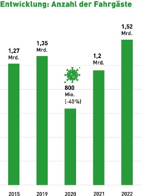 Mit 1,52 Mrd. Fahrgästen 2022 konnte der ÖPNV erneut kräftig zulegen.