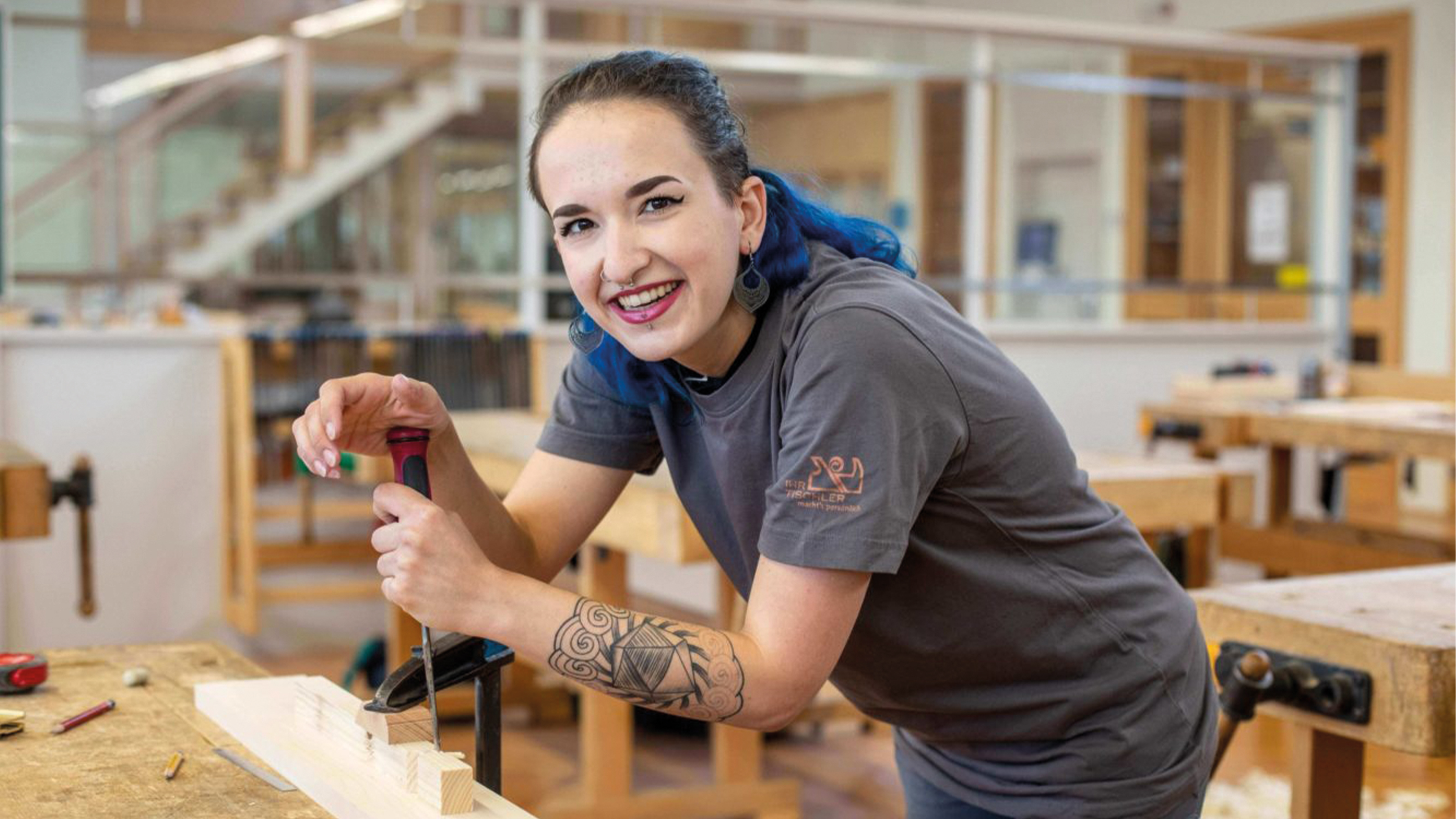 | Bestes Argument, das für eine Lehrausbildung genau in UNSEREM Unternehmen spricht: | ICH BIN TISCHLER – ICH BIN CHARAKTER Der Holzweg ist der richtige Weg, um bei einem spannenden Beruf mit Erdung und Zukunft anzukommen. Mit dem Werkstoff Holz kann man fast alles machen. Man lässt seiner Fantasie freien Lauf und kreiert Dinge, die es vorher so noch nicht gegeben hat. |