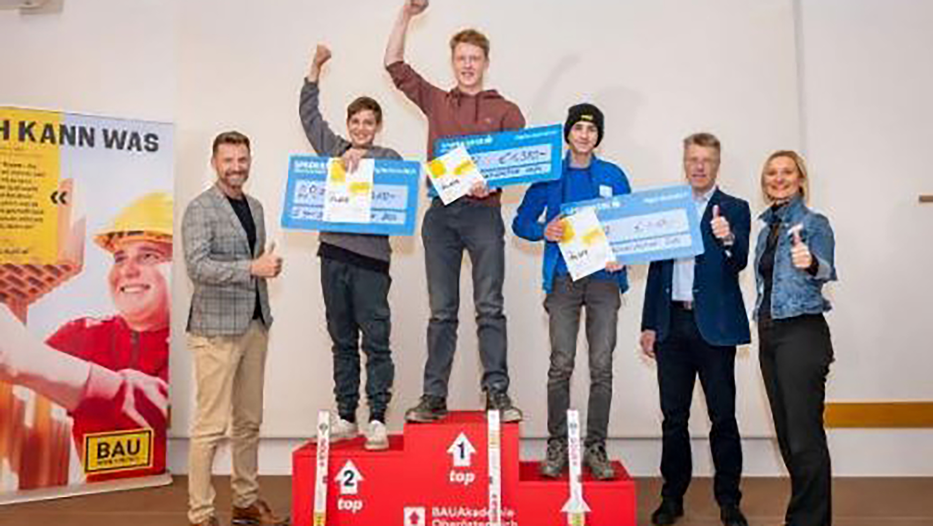 Heuer wurde das Format noch einmal als Wettbewerb aufgezogen, bevor es nächstes Jahr voraussichtlich eine neue Veranstaltungsform geben wird. Doch bevor es so weit ist, werden heuer noch die drei Stockerlplätze und damit auch die strahlenden Sieger bekanntgegeben: 1. Platz: Leonhard Starlinger (PTS Neufelden), 2. Platz: Florian Buchberger (PTS Pregarten), 3. Platz: Kevin Lenz (PTS Neufelden). BAUAkademie BWZ OÖ Geschäftsführer Harald Kopececk und Landesinnungsmeister-Stv. Martin Humer, freuten sich über die vielseitigen Talente und der diesjährige oö. Landessieger für Hochbau, Julian Hintermaier gratulierte d. Je nach Stockerlplatz wurde das beachtliche Preisgeld im Wert der NettoLehrlingsgelder im 1., 2. oder 3. Lehrjahr an die Jugendlichen und ihre Schulen übergeben.