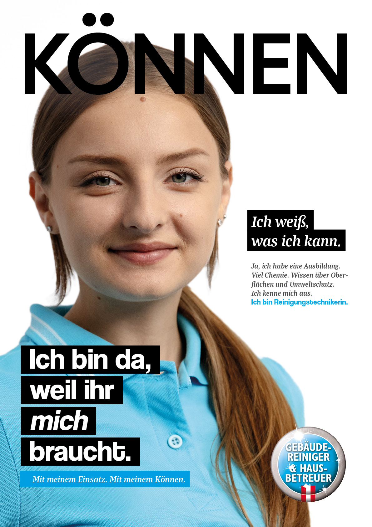 Der Reinigungstechniker:in ist da, weil die Gesellschaft ihn braucht. In Radiospots, TV Spots und Printsujets zeigen wir, was wir leisten.