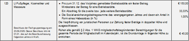 Beilage zur Einladung der Innungstagung der Landesinnung der Fußpfleger, Kosmetiker und Masseure