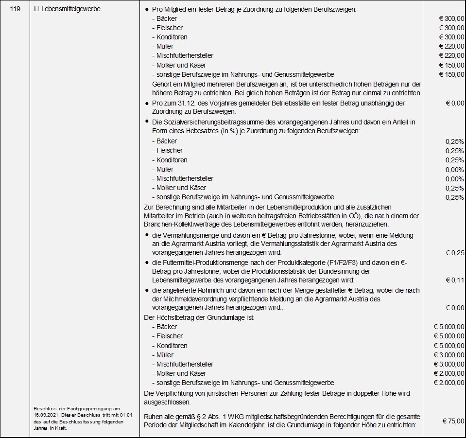 NEU: einheitlicher ruhender Betrag innerhalb der Innung = Grundumlagensenkung
