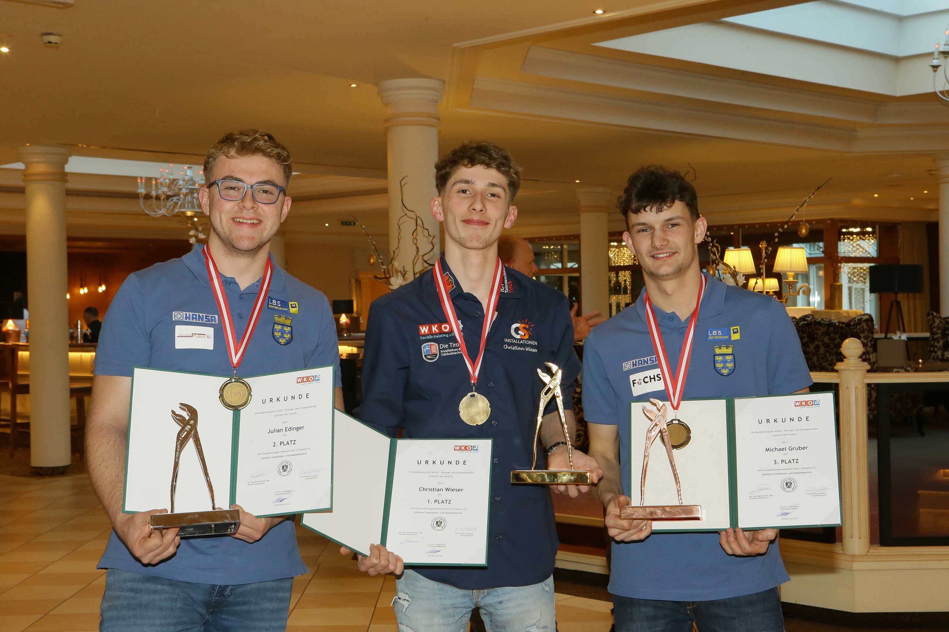 Bundesinnungsmeister-Stellvertreter Franz Schnöller, Landesinnungsmeister von Burgenland, Andreas Karlich und Bundeslehrlingswart Landesinnungsmeister Gerald Kopsa gratulierten den Gewinnern im Rahmen der Siegerehrung recht herzlich.