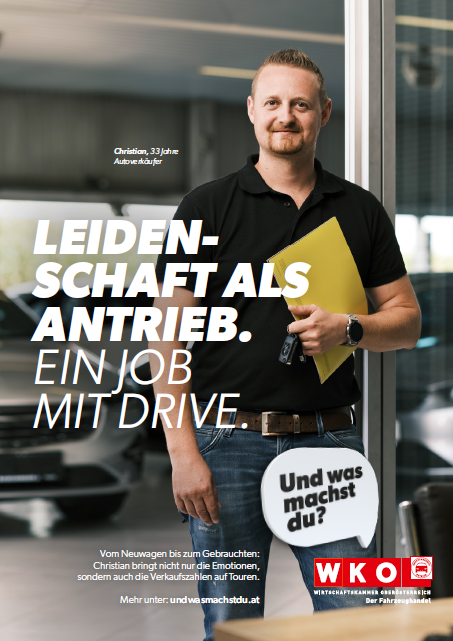 Mit unserer medienwirksamen PR-Arbeit positionieren wir Sie als oö. FahrzeughändlerIn als kompetenten Ansprechpartner mit ausgezeichnetem Fachwissen. Die Leser/Zuörer erhalten Expertentipps zu aktuellen Themen (zB E-Mobilität, saisonaler Reifenwechsel, NoVA…). Bei der Kauflustkampagne animieren wir den Konsumenten, sich vertrauensvoll an den Fahrzeughändler in Ihrer Nähe zu wenden. Natürlich informiern wir auch immer wieder über eine TOP-Ausbildungsmöglichkeit mit Zukunftskompetenzen in unserem Beruf.