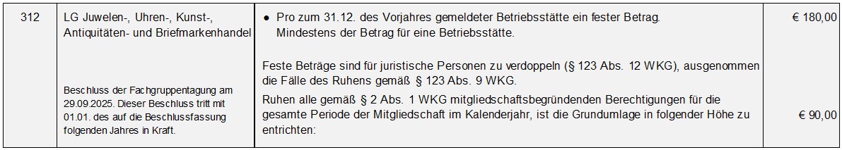Beilage zur Einladung der Tagung des Landesgremiums OÖ Juwelen-, Uhren-, Kunst-, Antiquitäten- und Briefmarkenhandel