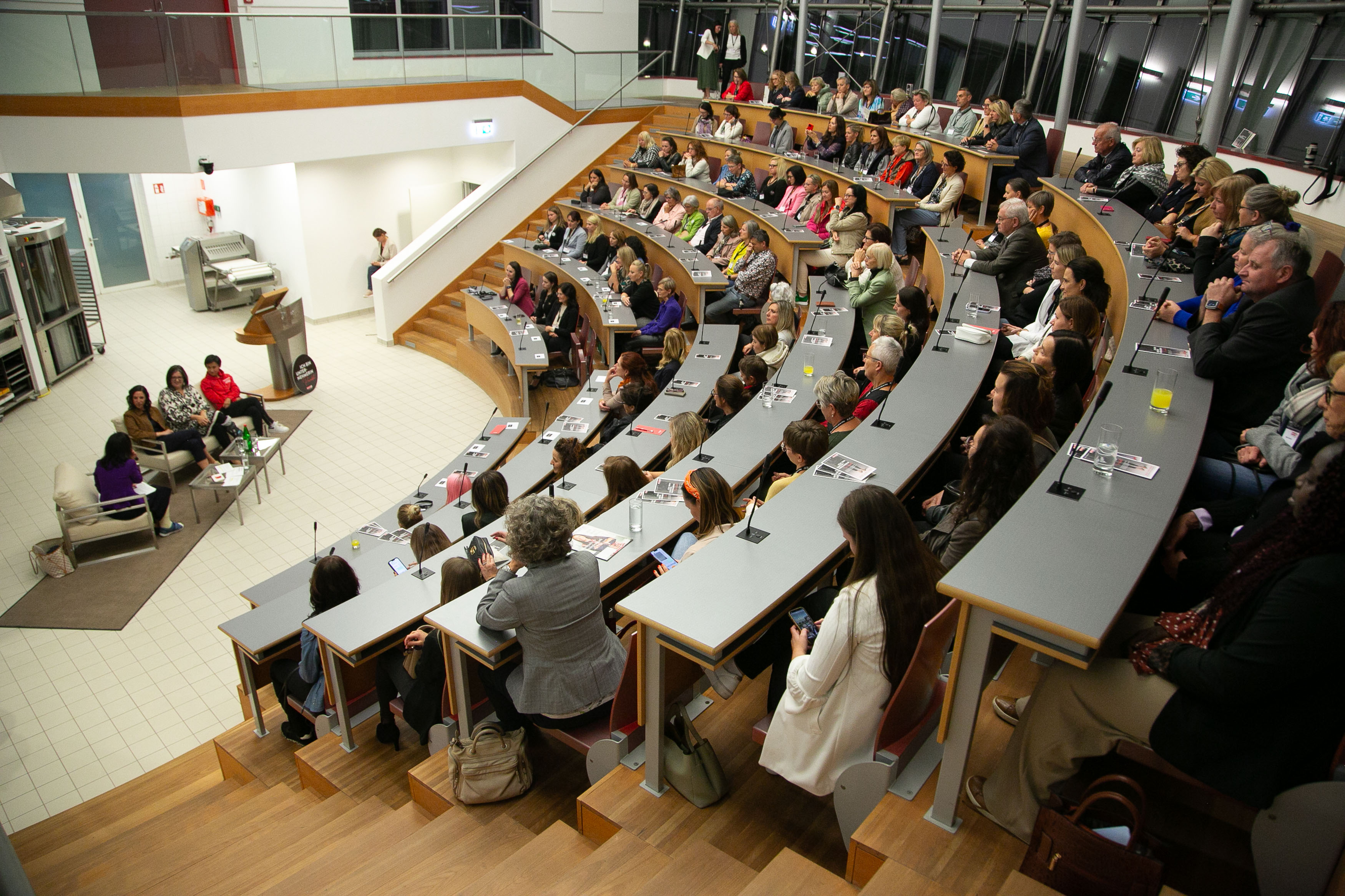Die gebürtige Chinesin Liu Jia, die von allen Susi gerufen wird, prägt seit über 25 Jahren den Tischtennissport in Österreich. Sie nahm als erste Frau Österreichs insgesamt an 6 olympischen Spielen teil. Bei der Veranstaltung gab sie ganz persönliche Einblicke in ihre sportlichen Anfänge, die sie im chinesischen Nationalsport in Peking machte. Neben ihren sportlichen Erfolgen sprach sie auch auf humoristische Art und Weise von ihren ersten Berührungen mit der österreichischen Kulinarik. Besonders bewegt haben die Ausführungen von Christine Wagner, Geschäftsführerin der Alfred Wagner Stahl-Technik & Zuschnitt GmbH in Pasching, die bereits in dritter Generation die Tradition des Familienbetriebes fortführt. Bereits früh wurde sie von der Leidenschaft für die Metallbranche, einer durchaus männerdominierten Branche, gepackt. Heute stehen für sie vor allem zentrale Werte wie das Miteinander und der Teamgedanke im Vordergrund. Bei der Suche nach Fachkräften setzt sie auf Diversität und Inklusion. Beliebter Arbeitgeber ist auch das Unternehmen von Julia Speiser, die die Talkrunde vervollständigte. Seit über einem Jahrhundert fertigt der Familienbetrieb Entholzer Produkte, die Menschen begeistern. 1920 als Einmann-Glaserei von ihrem Urgroßvarter gegründet, widmet sich die Firma heute österreichweit der Fenster- und Türenproduktion im Segment Kunststoff und Kunststoff-Aluminium. Das Unternehmen wird von ihr und ihrem Mann voller Hingabe und in der vierten Generation immer noch vollständig als Familienunternehmen geführt.