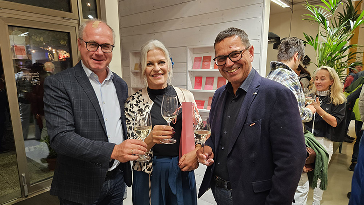 Zu ihrem 5-jährigen Jubiläumsfest besuchten WKO Grieskirchen Obmann Günther Baschinger (im Bild links) und WKO-Leiter Hans Moser (r.) Kerstin Glöckl-Steininger (M.) in ihrer „Weinzwitscherei“ im Stadtzentrum von Peuerbach. Viele Weinliebhaber aus Nah und Fern ließen sich diesen perfekten Anlass nicht entgehen, um neue Weine zu entdecken und Freunde zu treffen. Die engagierte und innovative Unternehmerin führt mit Begeisterung ihr Unternehmen und sprießt von weiteren Geschäftsideen mit Fokus auf österreichischen Weinen.