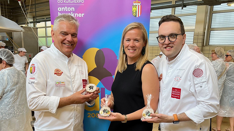 Anlässlich des 200. Geburtstags von Anton Bruckner hat Konditormeister Leo Jindrak den Bruckner-Taler kreiert – neben der Linzer Torte ein wunderbares Mitbringsel aus Linz. Auf den Bruckner-Geschmack ist auch die k.u.k. Hofbäckerei Linz gekommen. Hier wurde der Anton-Bruckner-Schober kreiert. Dieser besondere Germ-Guglhupf mit Sauerkirschen zählte laut Überlieferungen zu den Lieblingsmehlspeisen des Komponisten.