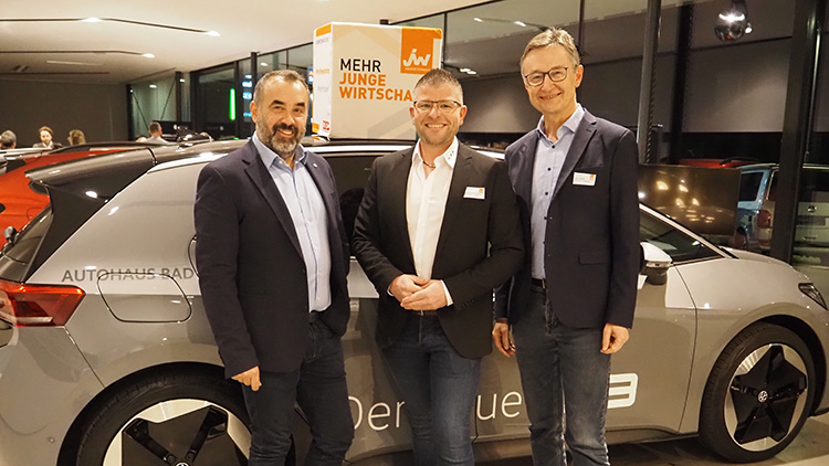Rund 20 Teilnehmer:innen, darunter Geschäftsführer Thomas Hammerschmid und Franz Tauber, Bezirksstellenleiter der WKO Urfahr-Umgebung, nahmen am zweiten Business Speed Dating der Jungen Wirtschaft Urfahr-Umgebung im Autohaus Bad Leonfelden teil.
