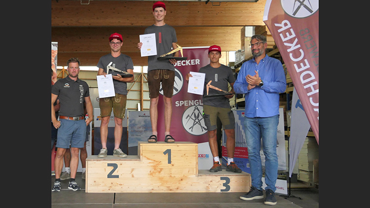 Florian Koch aus Traberg siegt beim Landeslehrlingswettbewerb der Dachdecker vor Matthäus Kniewasser aus Spital am Pyhrn und Maximilian Mathe aus Bad Goisern