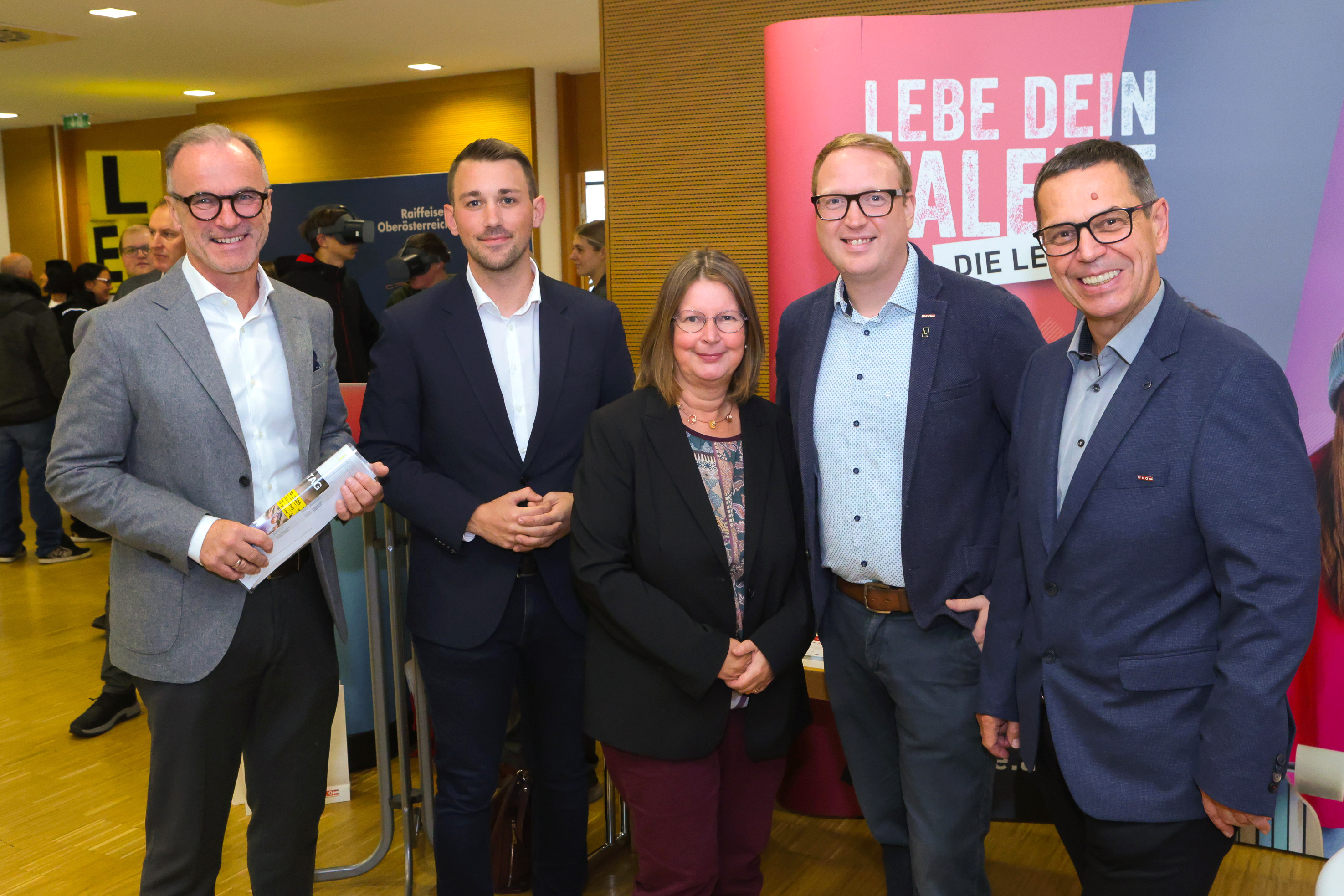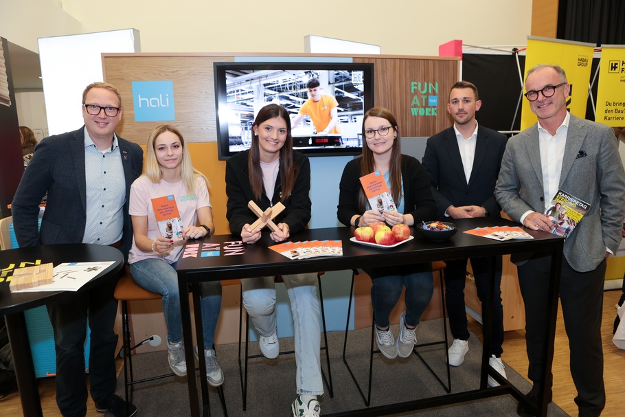 Die Organisatoren (im Bild oben v. l. Christian Schönhuber, Alexander Schauer, Doris Aflenzer, Tobias Luger, Hans Moser) freuen sich sehr darüber, dass wieder ein abwechslungsreicher Einblick in die Berufswelt und die regionalen Lehrstellenangebote gegeben wurde. „Die große Anzahl an attraktiven Ausstellern und der sehr gute Besuch sind Motivation für die Zukunft!“ sind WKO-Obmann Tobias Luger und Leiter Hans Moser hocherfreut.
