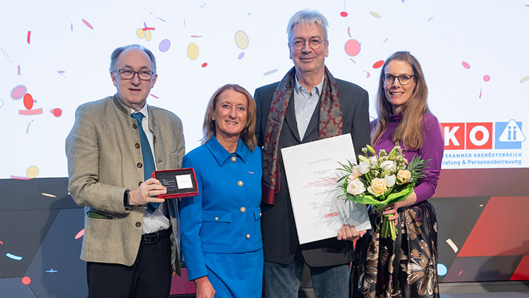Viktoria Tischler, Obfrau der oö. Fachgruppe Personenberatung und Personenbetreuung, nahm den am 6. Februar stattgefundenen Branchentag zum Anlass, verdiente Unternehmerinnen und Unternehmer der Branche zu ehren. Gemeinsam mit Franz Landerl, dem Berufsgruppensprecher der Personenbe-ratung sowie Fachgruppengeschäftsführerin Monika Nowotny überreichte sie die Dankesurkunden in der WKOÖ.