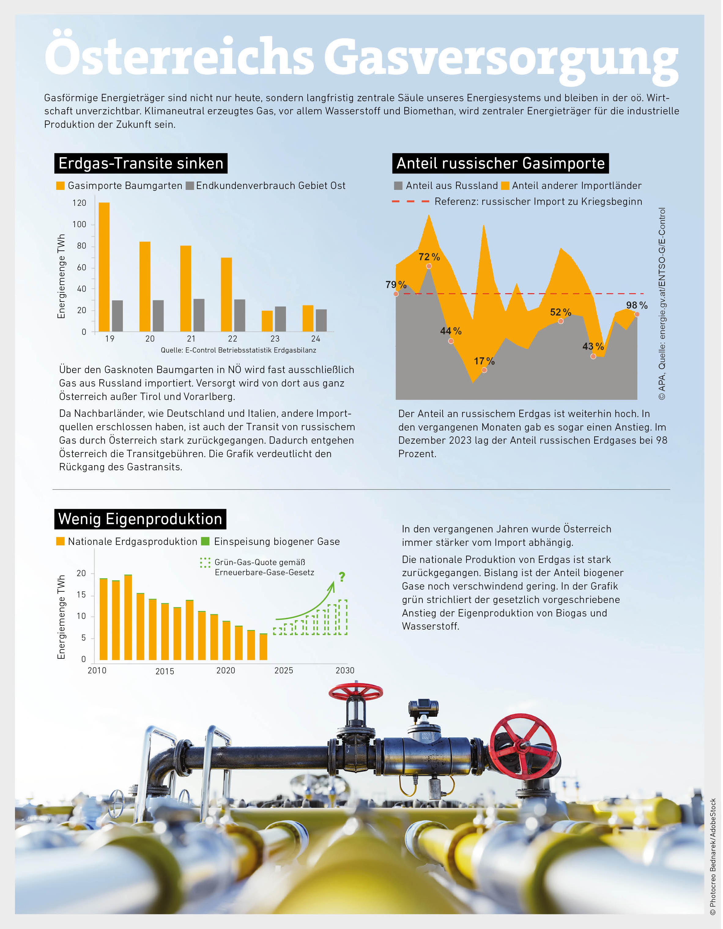 Für 2024 ist die Gasversorgung in Österreich gesichert, da das Land ausreichend Gas aus Russland erhält und die Speicher sehr gut gefüllt sind. Die Wirtschaft braucht aber langfristige Perspektiven.